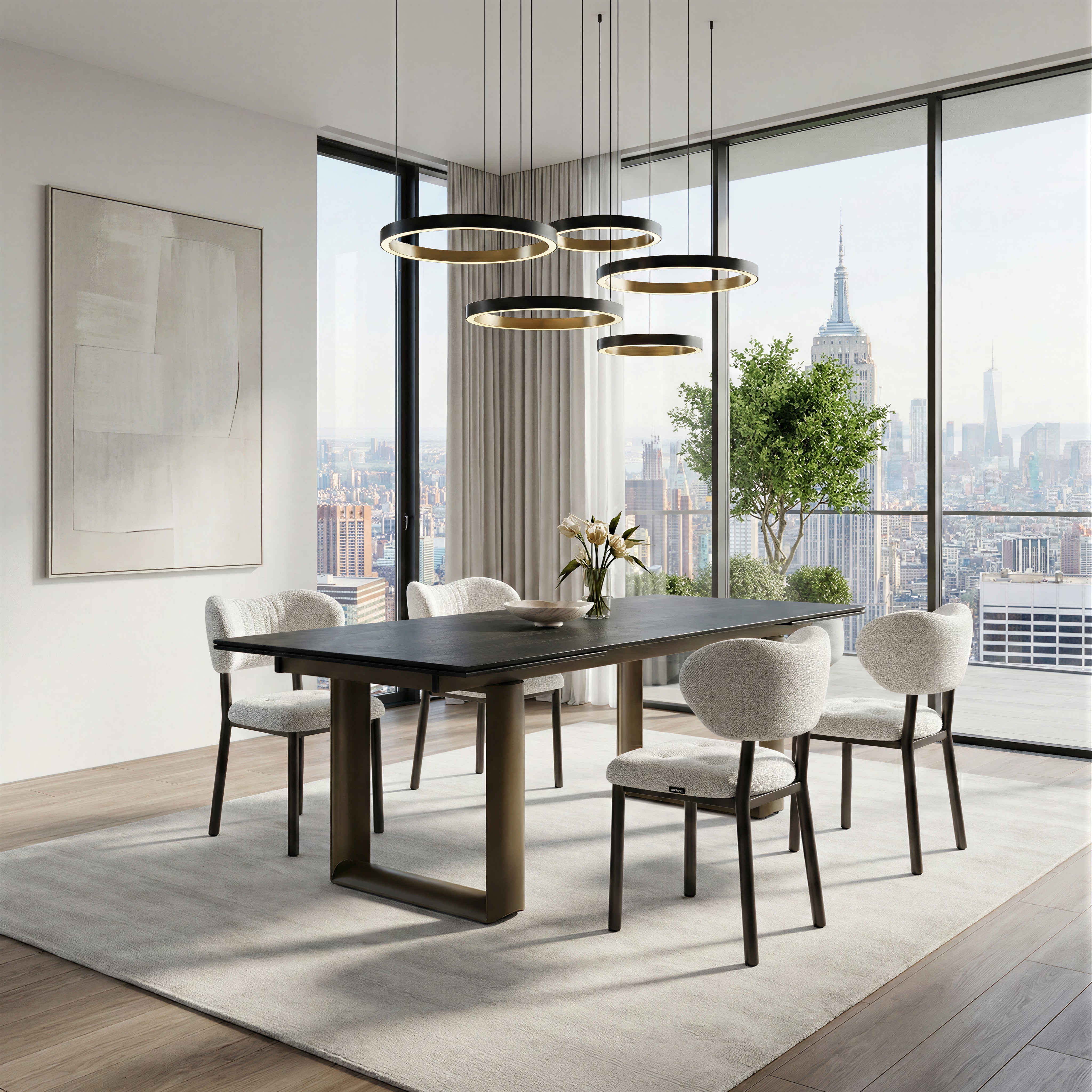 Savoy, 78"-118" Extendable Dining Table with Sintered Stone, Black