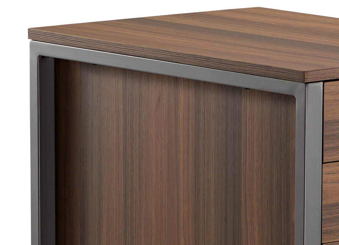 The combination of a metal frame with high load-bearing capacity, a mirror-like glossy finish, and the smooth and delicate texture of walnut wood grain exudes a luxurious feel.