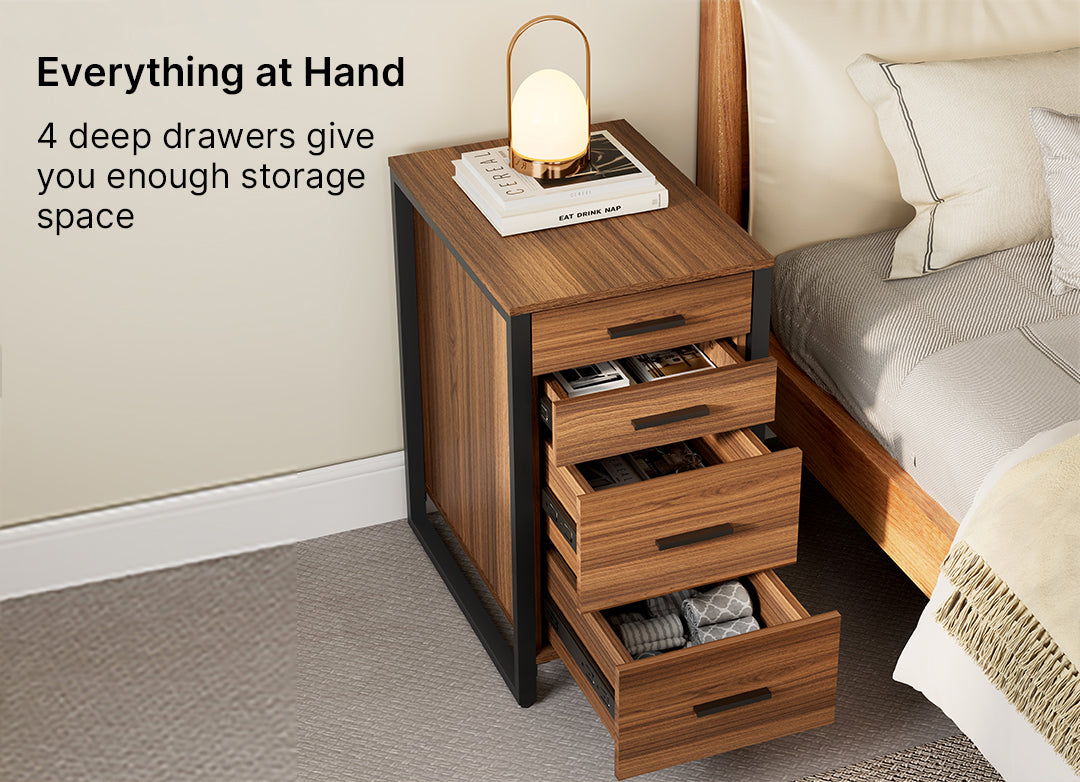 - MULTIPURPOSE: This walnut bedside table is ideal for bedrooms, dormitories, living rooms, offices, and more. It can be a bedroom nightstand, a storage cabinet/side table in the living room, or a file cabinet in the office. It's a great addition to anywhere.