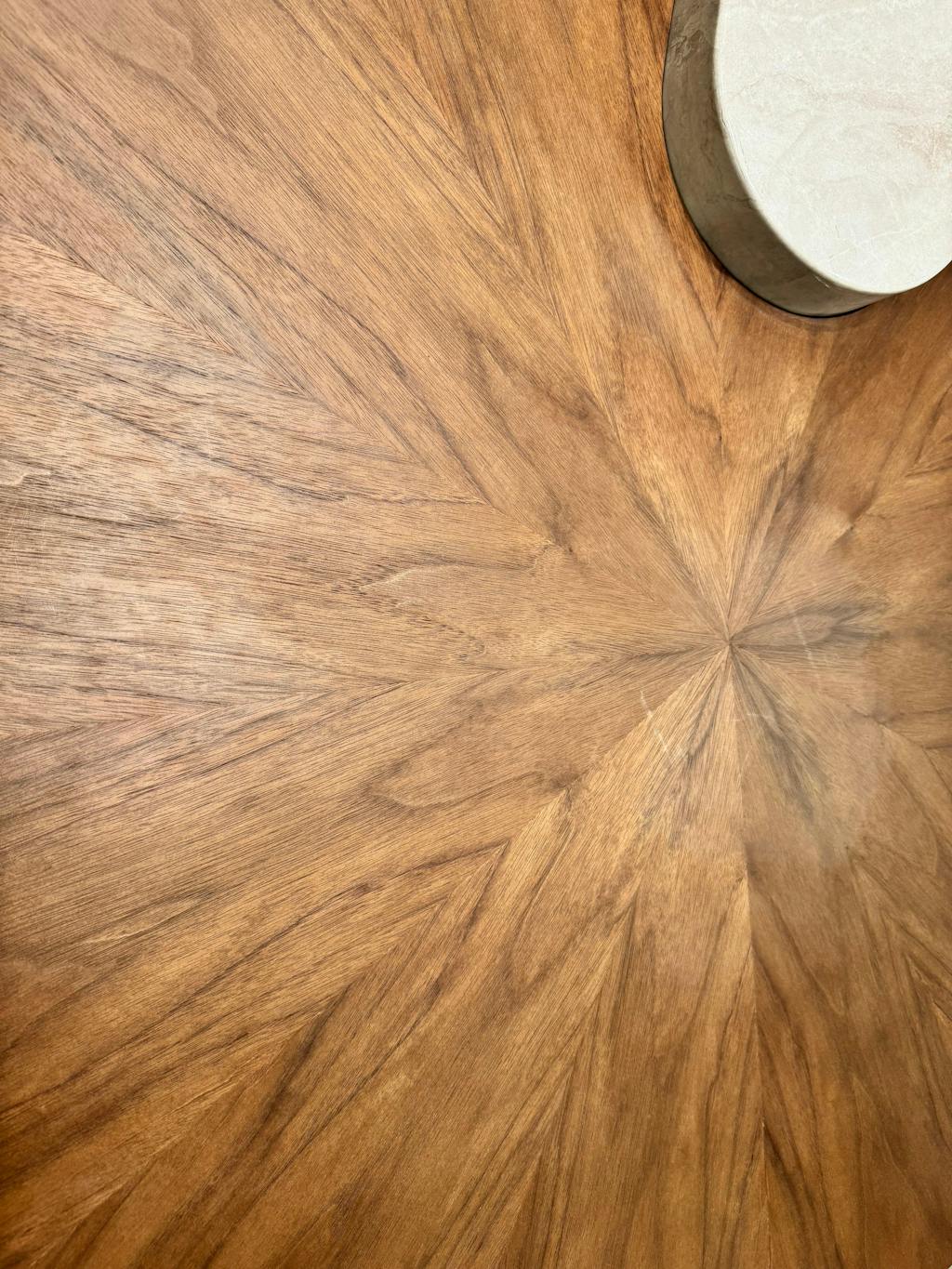 This one is perfect. The round shape is great – no sharp corners to worry about. The marble part is super easy to wipe clean, and the wood has a nice, warm tone. It feels really solid, not flimsy at all. Very happy with it.