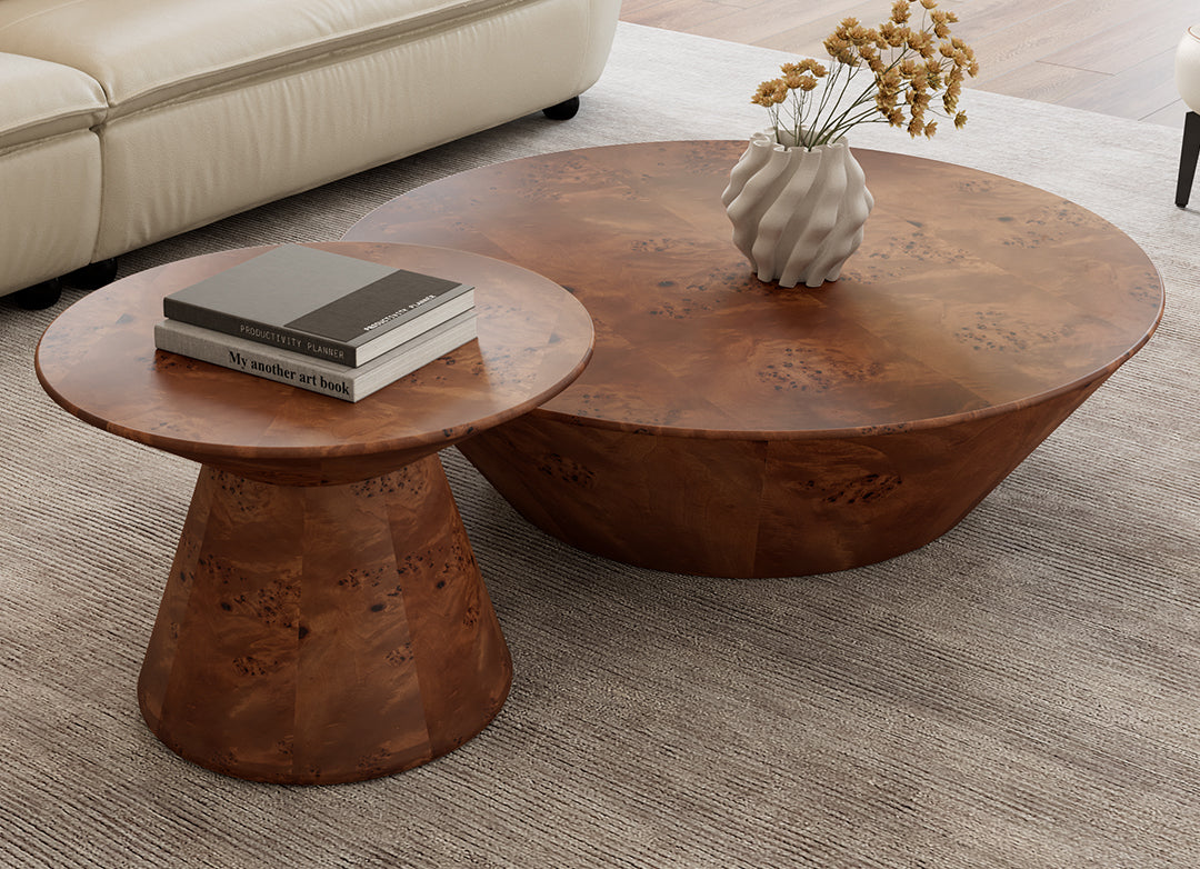 This coffee table set boasts an elegant design, offering flexibility to adapt to a wide range of space configurations and placement options. The veneer surface has undergone exquisite finishing, resulting in a sleek, smooth top that's effortless to clean and maintain. Additionally, it serves as a practical surface for holding items like books, magazines, and decorative accents, enhancing the overall convenience of your living space.