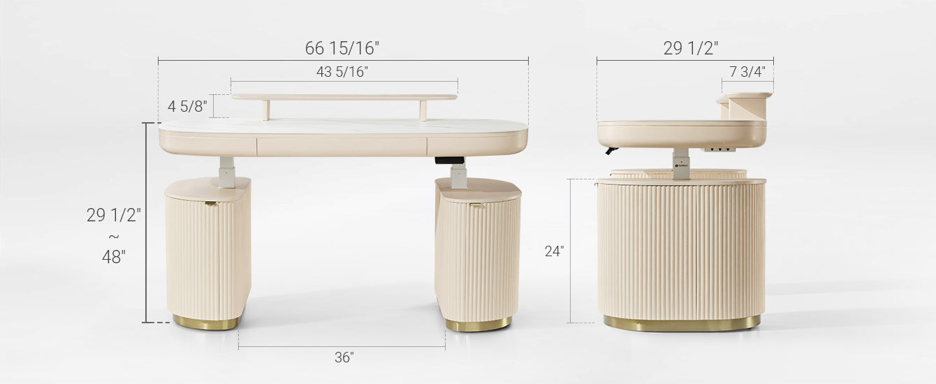 Height-Adjustable Version: Adjusts height from 29.5" to 48" to suit various users. Includes 3 programmable memory presets for seamless sit-to-stand transitions. Built-in Hall sensors and smart anti-collision technology ensure safe, reliable operation.