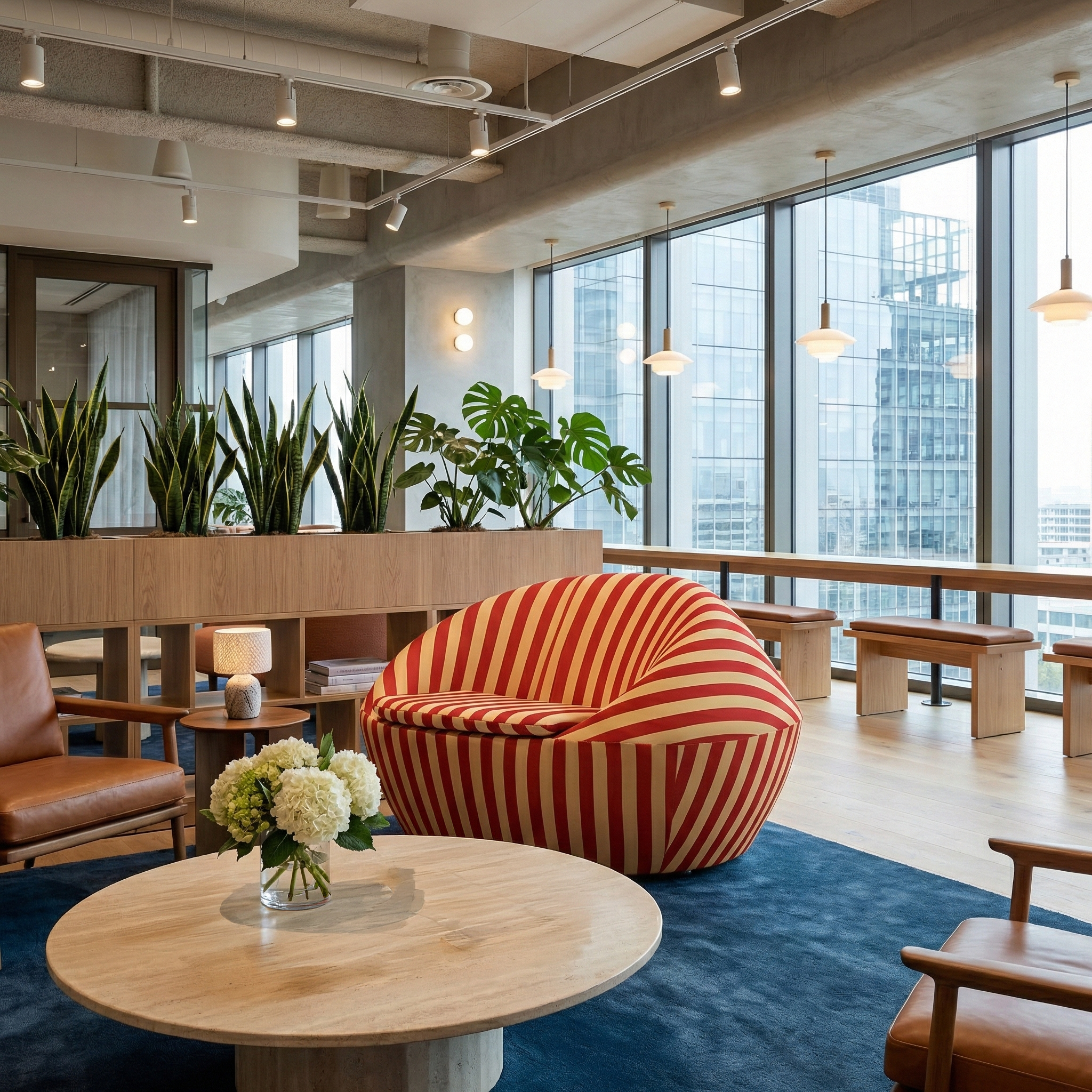 Explore a stylish fusion of bold lines and colors. Immerse yourself in the luxurious comfort and serenity offered by our contemporary striped lounge chair, featuring super-elastic padding and a gracefully curved design.