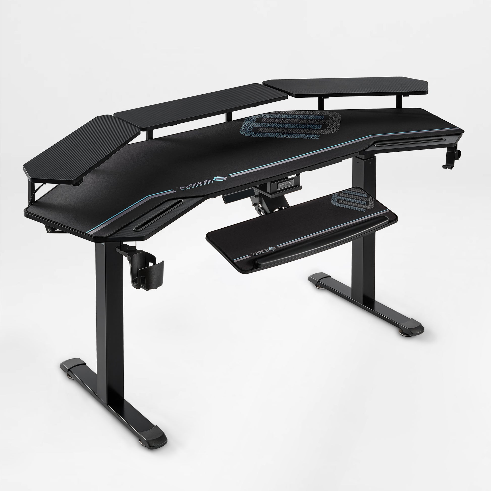 The ultimate standing desk to take you from work to gaming. The spacious 72” surface gives you plenty of room for your dream setup, while LED light strips set the perfect mood from focused work sessions to after-hours gaming. Customizable shelves, advanced features, and bonus accessories make this desk the real MVP.