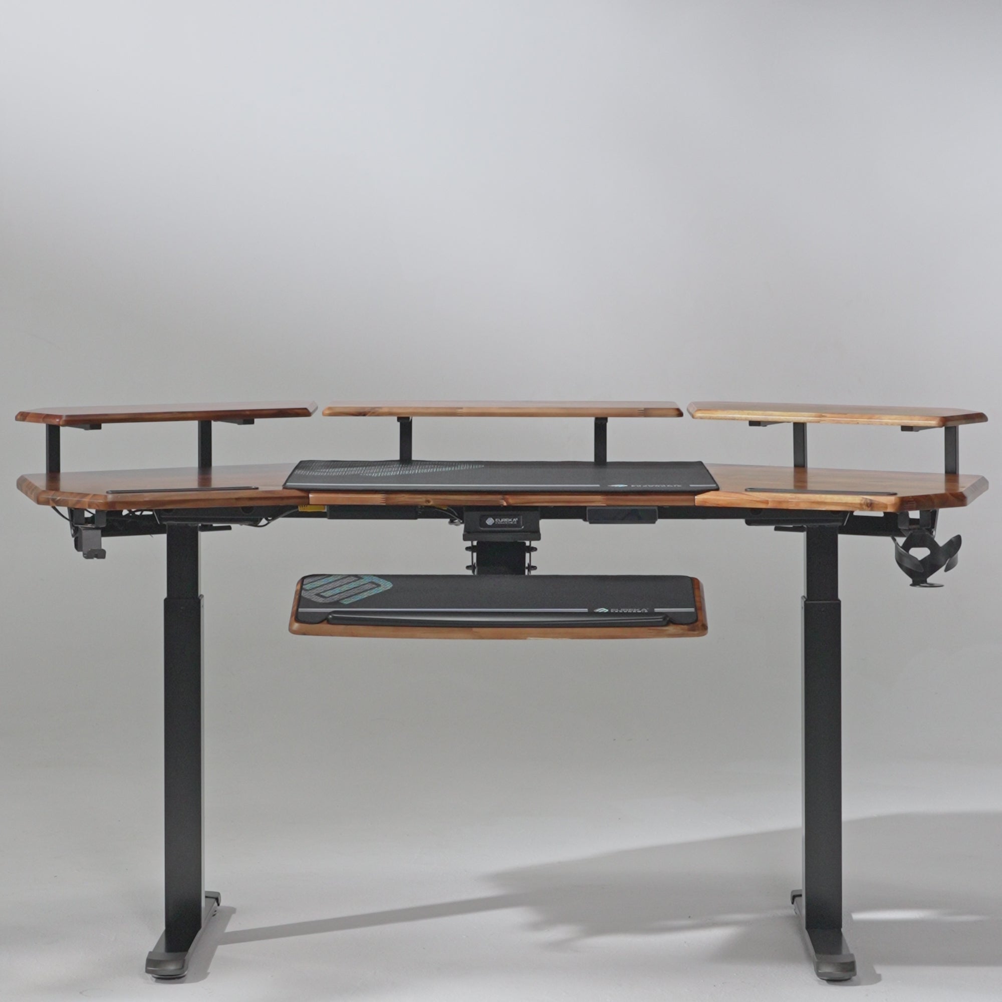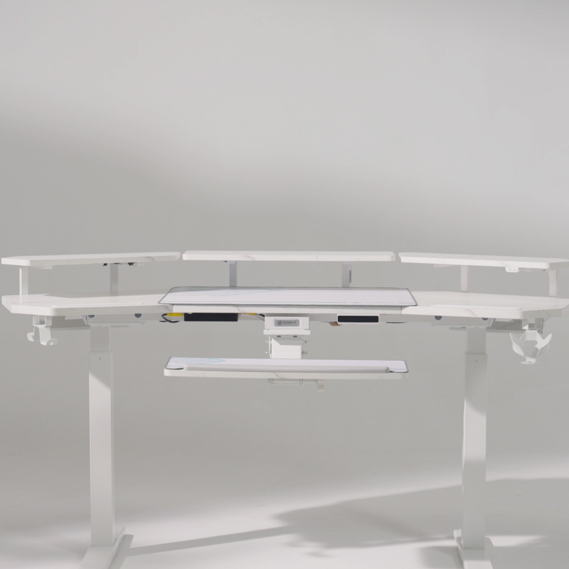 The ultimate standing desk to take you from work to gaming. The spacious 72” surface gives you plenty of room for your dream setup, while LED light strips set the perfect mood from focused work sessions to after-hours gaming. Customizable shelves, advanced features, and bonus accessories make this desk the real MVP.