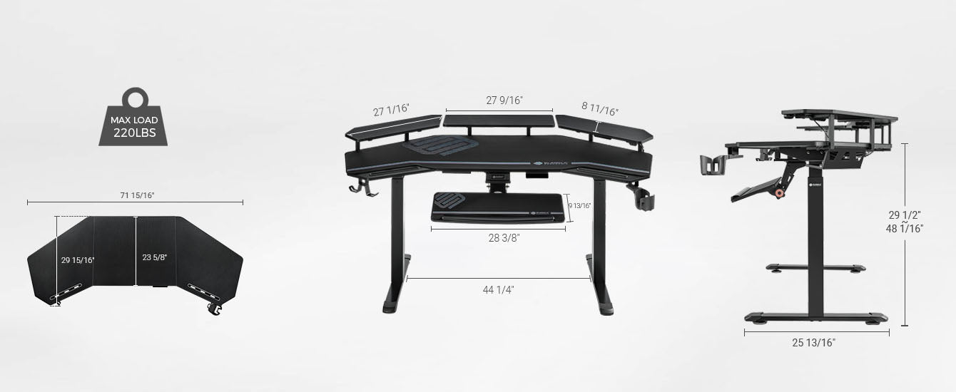 - ES71 Overall Dimensions: 71.93"W x 29.92"D x 29.53"-48.03"H