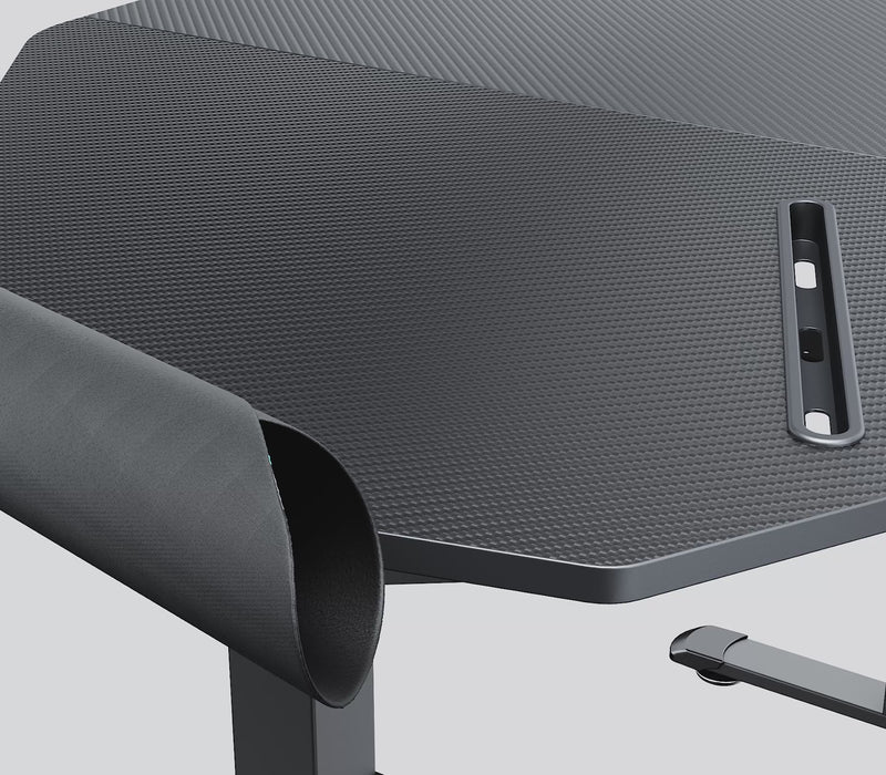 Seriously impressed with the build quality. The steel frame is heavy-duty and the carbon fiber surface looks and feels premium. The included accessories like the monitor shelf and keyboard tray are surprisingly high quality. Assembly took a bit of time but was straightforward.