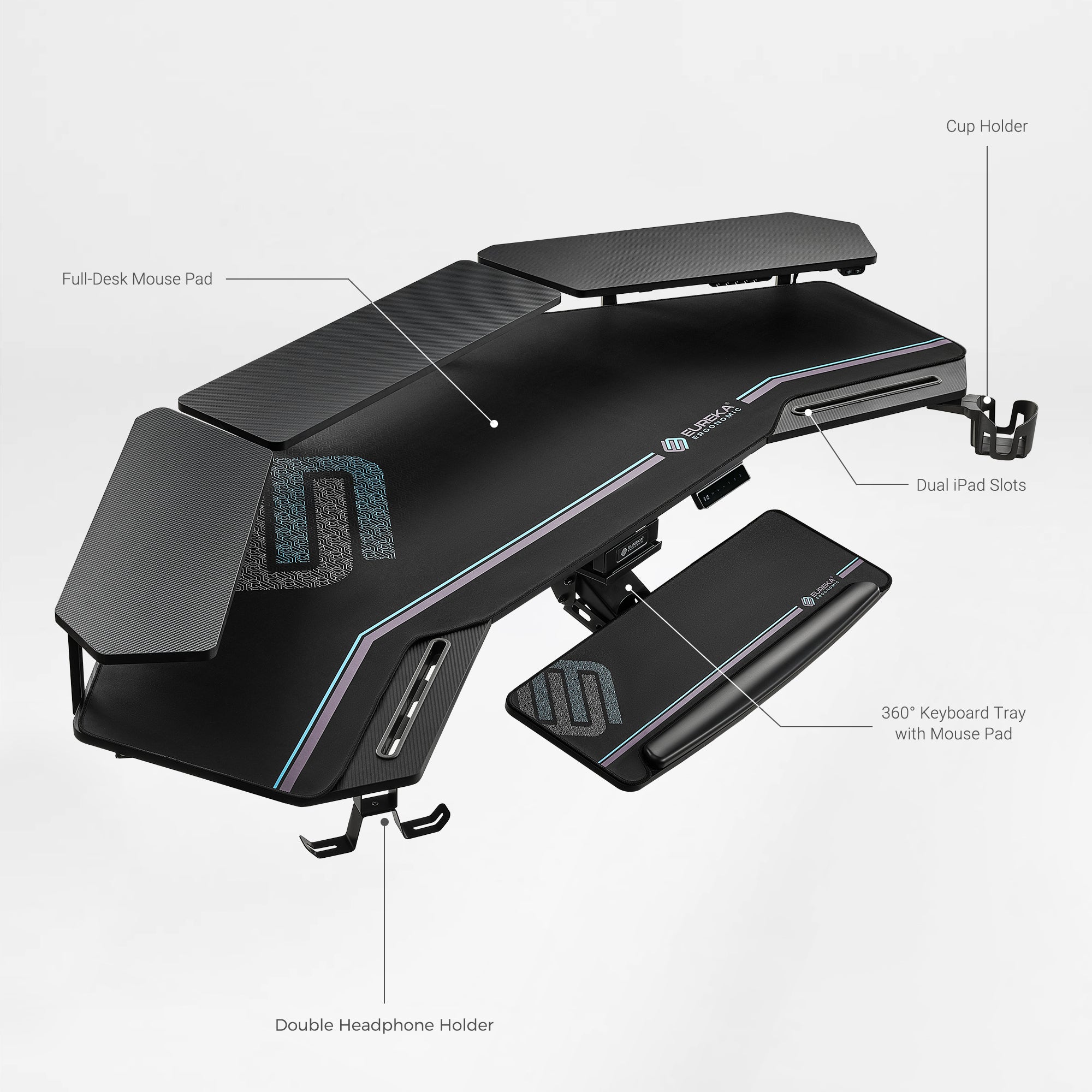The ultimate standing desk to take you from work to gaming. The spacious 72” surface gives you plenty of room for your dream setup, while LED light strips set the perfect mood from focused work sessions to after-hours gaming. Customizable shelves, advanced features, and bonus accessories make this desk the real MVP.