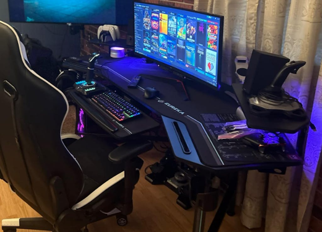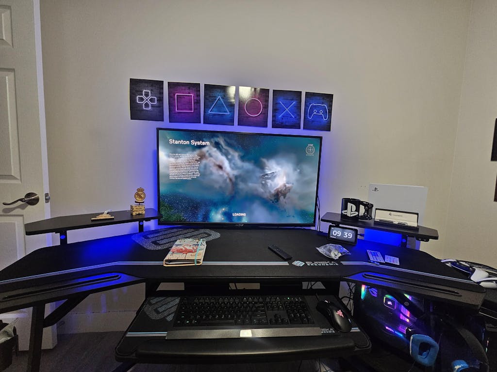 Great build quality, lots of space and the lights are an awesome touch! I'd recommend using a drill if you have one, it made assembly much easier. Take an extra moment reading the instructions, and look for the numbers on the bags. The slots on either side hold my S22 Ultra and remotes. Keyboard tray makes typing easy.