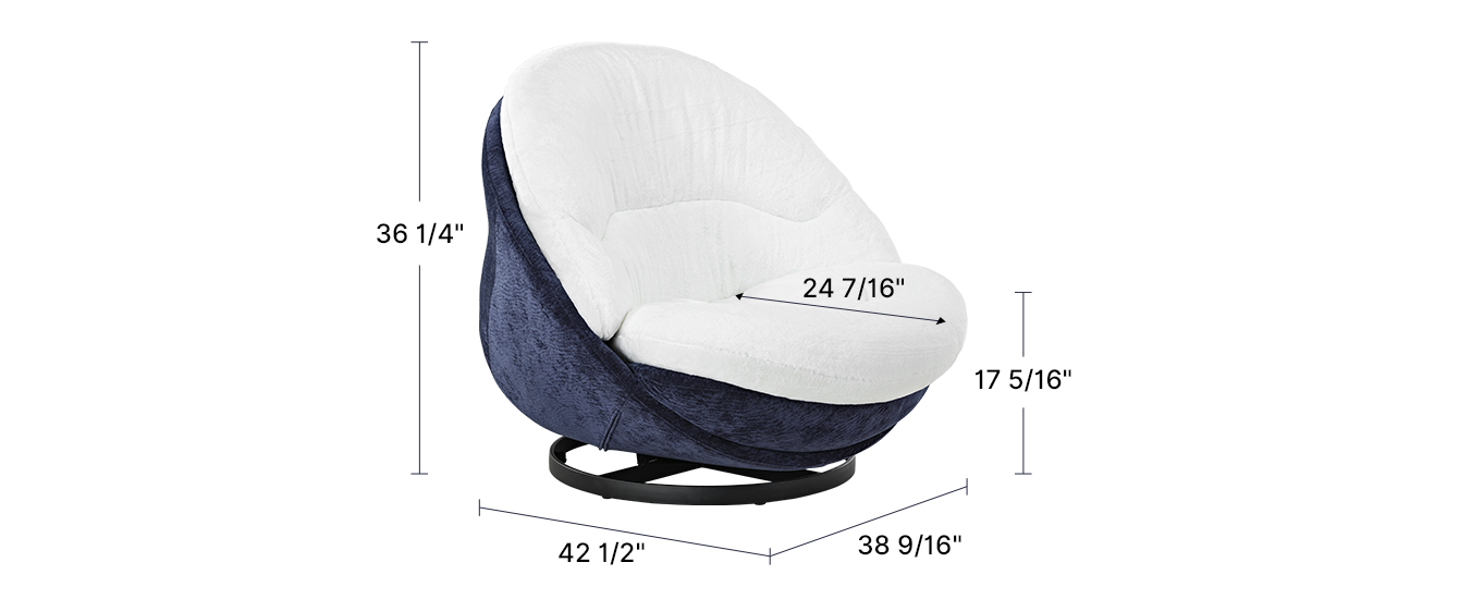 Crafted with exquisite precision, this cozy swivel chair is tailored for people seeking ultimate relaxation. Its white faux rabbit fur contact surface and chenille fabric on the back make it a perfect addition to any bedroom or living room. Enhance your leisure experience with our unique and cozy swivel lounge chair, which is the ultimate relaxation spot for your stylish downtime.
