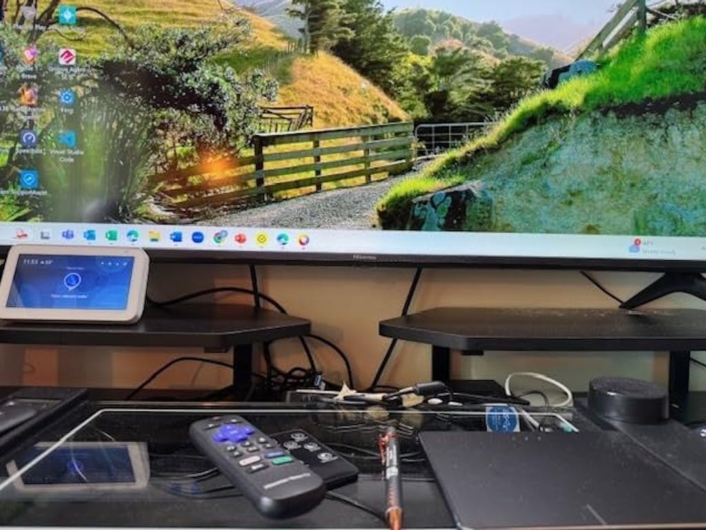 The fact that these come as two risers let me use them to raise my 55" monitor off the desk and get extra space is very welcome. Even though I have a large desk it has gotten cluttered over time. With the extra space on top and under the risers I can clear out some of it.
