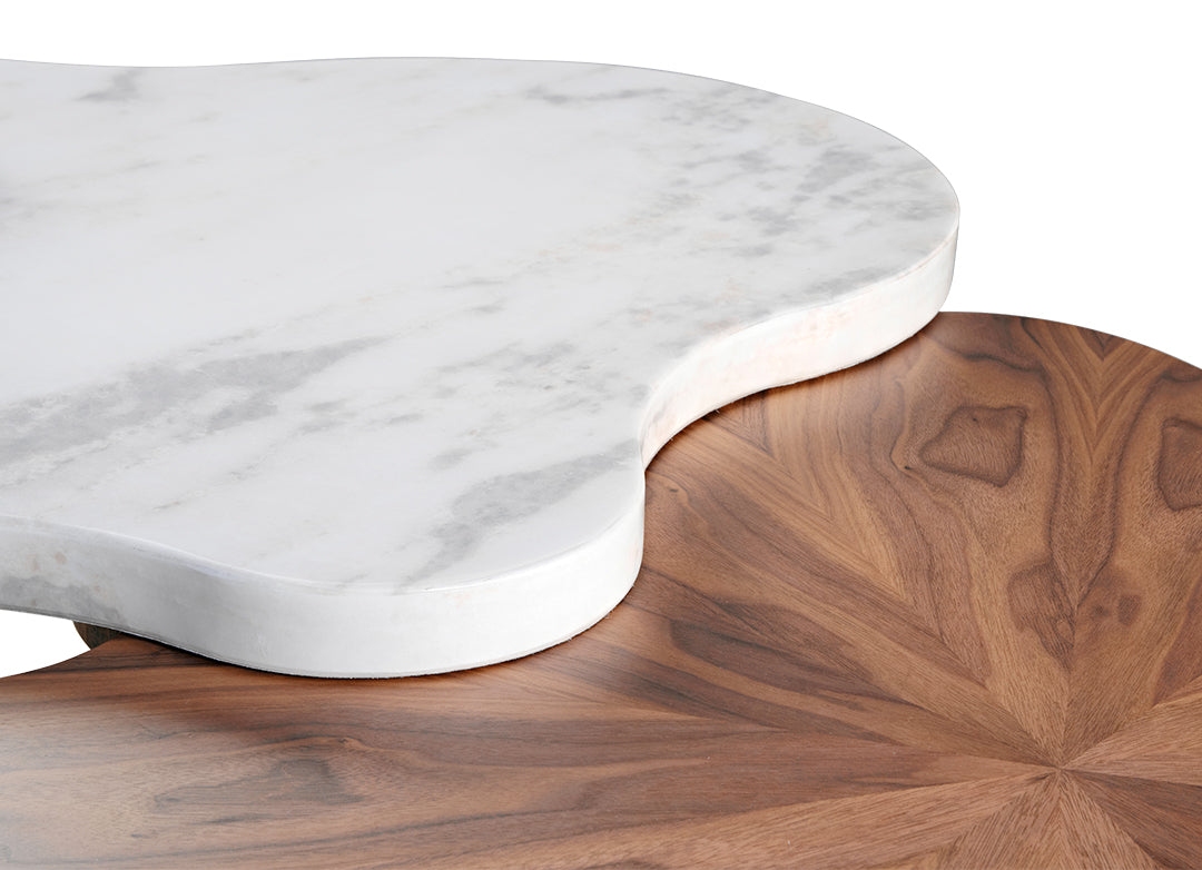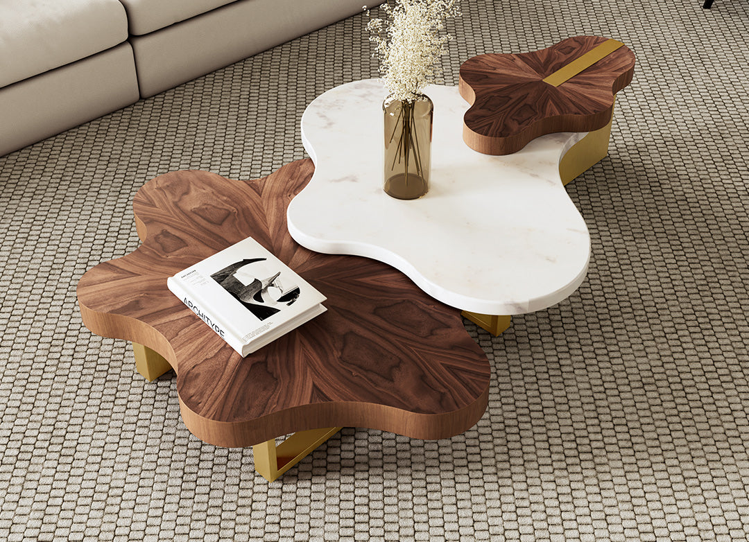 The Cloud Solid Wood Coffee Table: A harmonious blend of height and low, overlapping in a captivating design. The warm and curved visual aesthetics, combined with the exquisite fusion of white and walnut colors, evoke a sense of warmth and elegance. Transform your living room into a vibrant space, brimming with vitality!