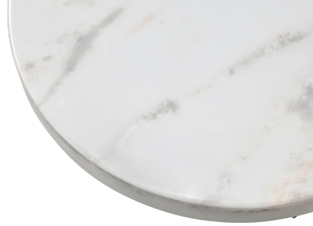 Radiating understated beauty, the white marble veneer tabletop boasts delicate textures akin to real stone, exuding a simple yet elegant aesthetic, showcasing a touch of modern sophistication.