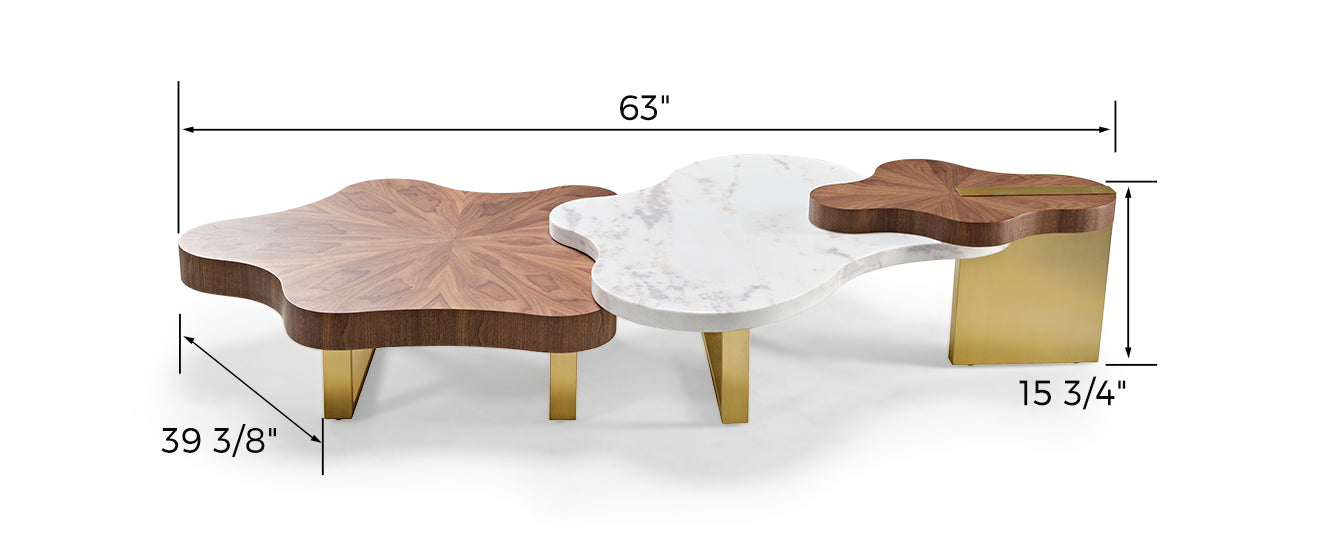 - 63" Cloud Shape Solid Wood Coffee Table Set