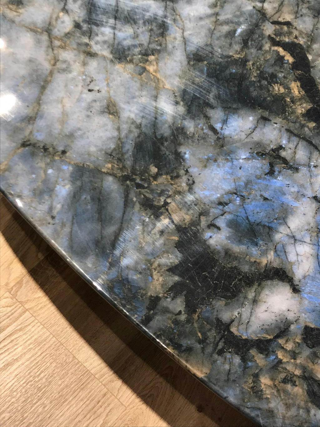 Thought the irregular shape would be hard to match, but it actually works in my living room. The blue veining is artistic.
