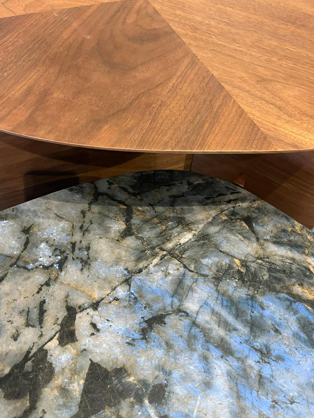 - 41" Walnut & Blue Jade Marble Irregular Coffee Table with Side Table Set