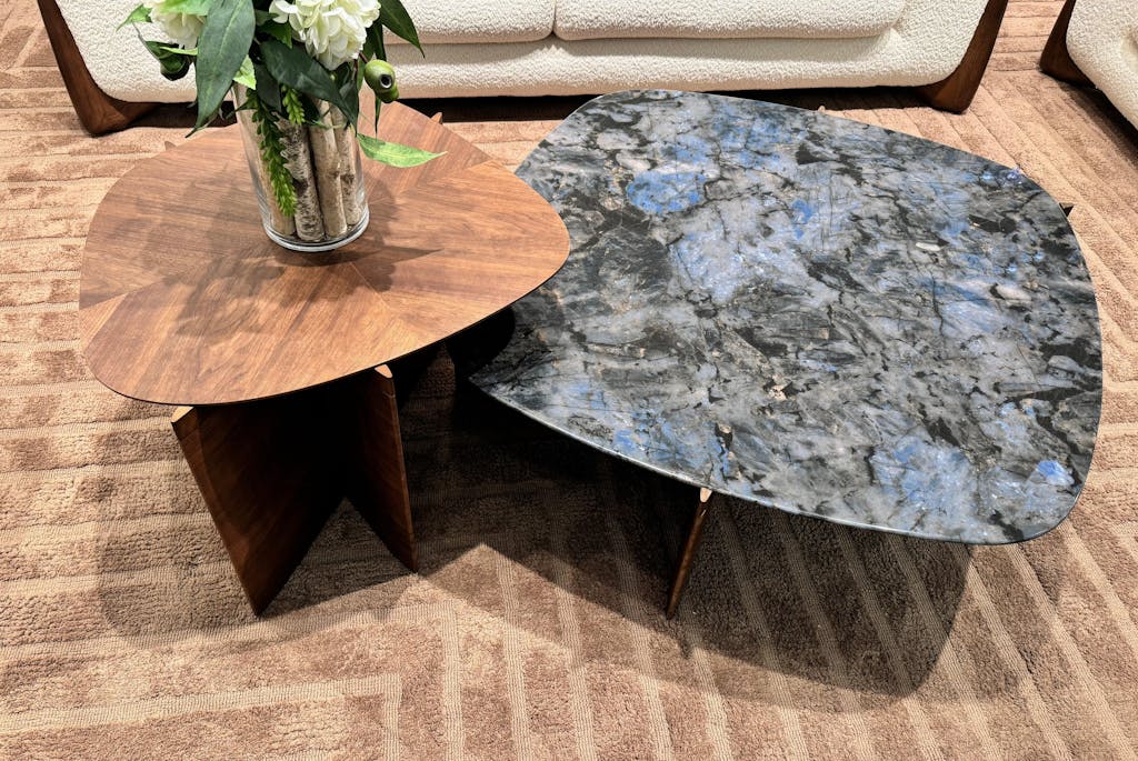 - Modern Marble Nesting Table: This coffee table set consists of two irregular coffee tables. They can be used individually as side tables, as a center table or as end tables, etc. Nest them together to claim more interior space and create a unique configuration.