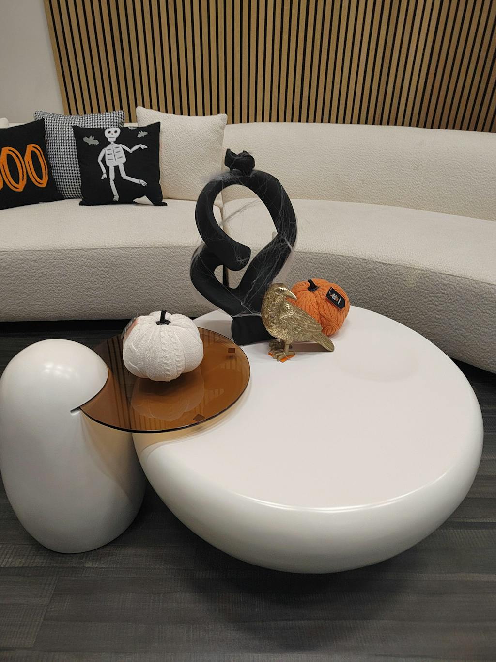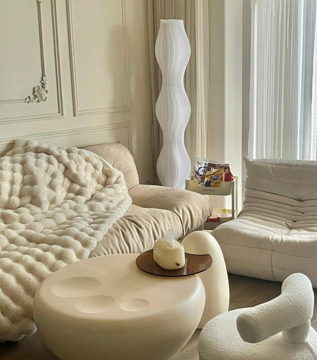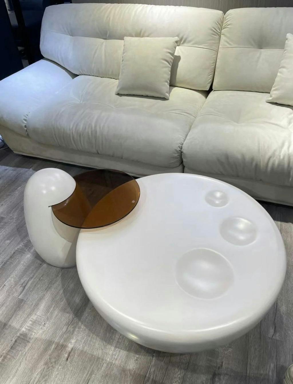 After receiving this coffee table, I started decorating it right away. I was a bit worried it wouldn’t fit my living room, but its overall shape is beautiful and charming, perfectly complementing the atmosphere. The color is a lovely milky white, and the material feels really nice. Plus, you don’t have to worry about it getting dirty since you can easily wipe it clean. The side table is also movable, making it super practical and just perfect for my space.