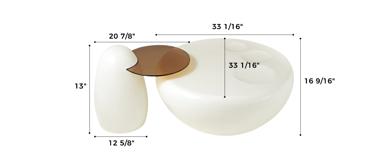 After receiving this coffee table, I started decorating it right away. I was a bit worried it wouldn’t fit my living room, but its overall shape is beautiful and charming, perfectly complementing the atmosphere. The color is a lovely milky white, and the material feels really nice. Plus, you don’t have to worry about it getting dirty since you can easily wipe it clean. The side table is also movable, making it super practical and just perfect for my space.