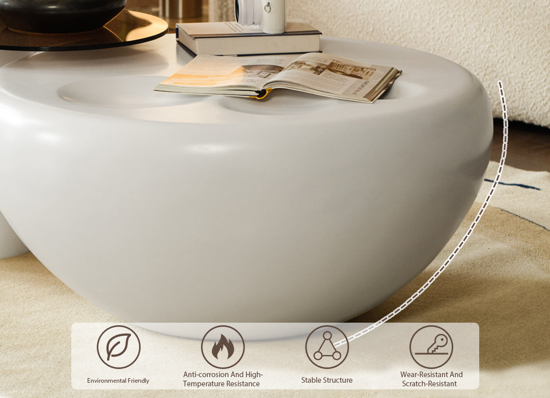 - Abstract Sophistication: The coffee table’s legs are designed as hemispheres, which do not take up extra space and have the advantage of bearing the weight firmly. Thus, the table is not easy to tip over!