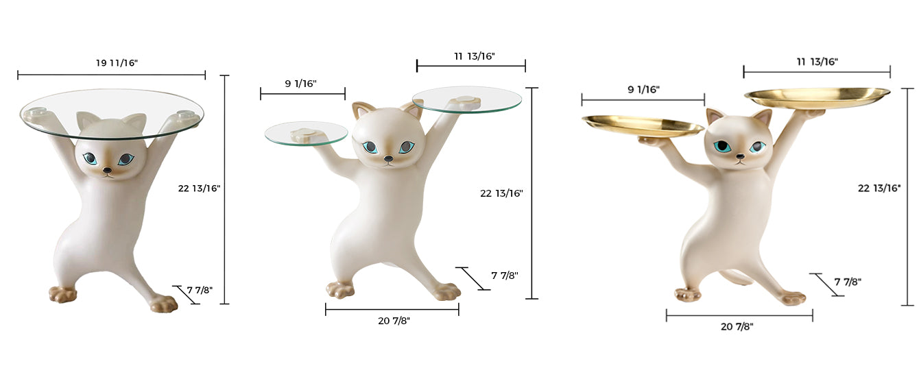Introducing the Enchanting Cat Side Table. These stylishly sophisticated floor decorations provide reliable weight support and large storage capacity with their dual trays, while their creative and charming design will add a delightful touch to any room. Effortless to maintain and perfect for sprucing up your home.