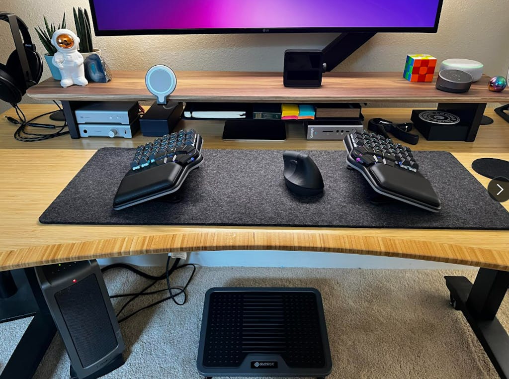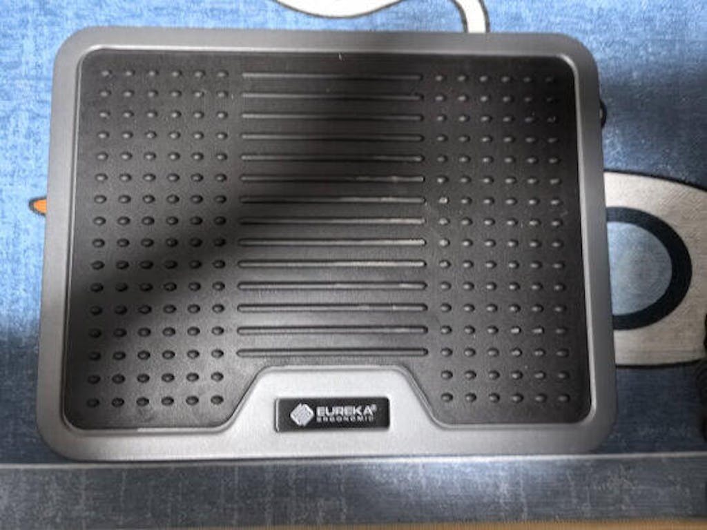 I wish I had bought this months ago. I used to use a soft cushiony foot rest but found it kept sliding around and would not stay in place and although soft, it wasn’t very comfortable after a while. This foot rest feels great under my feet with no shoes on. It’s very comfortable and built like a tank. It doesn’t slide around on my carpet. Probably one of my favorite purchases for my home office.