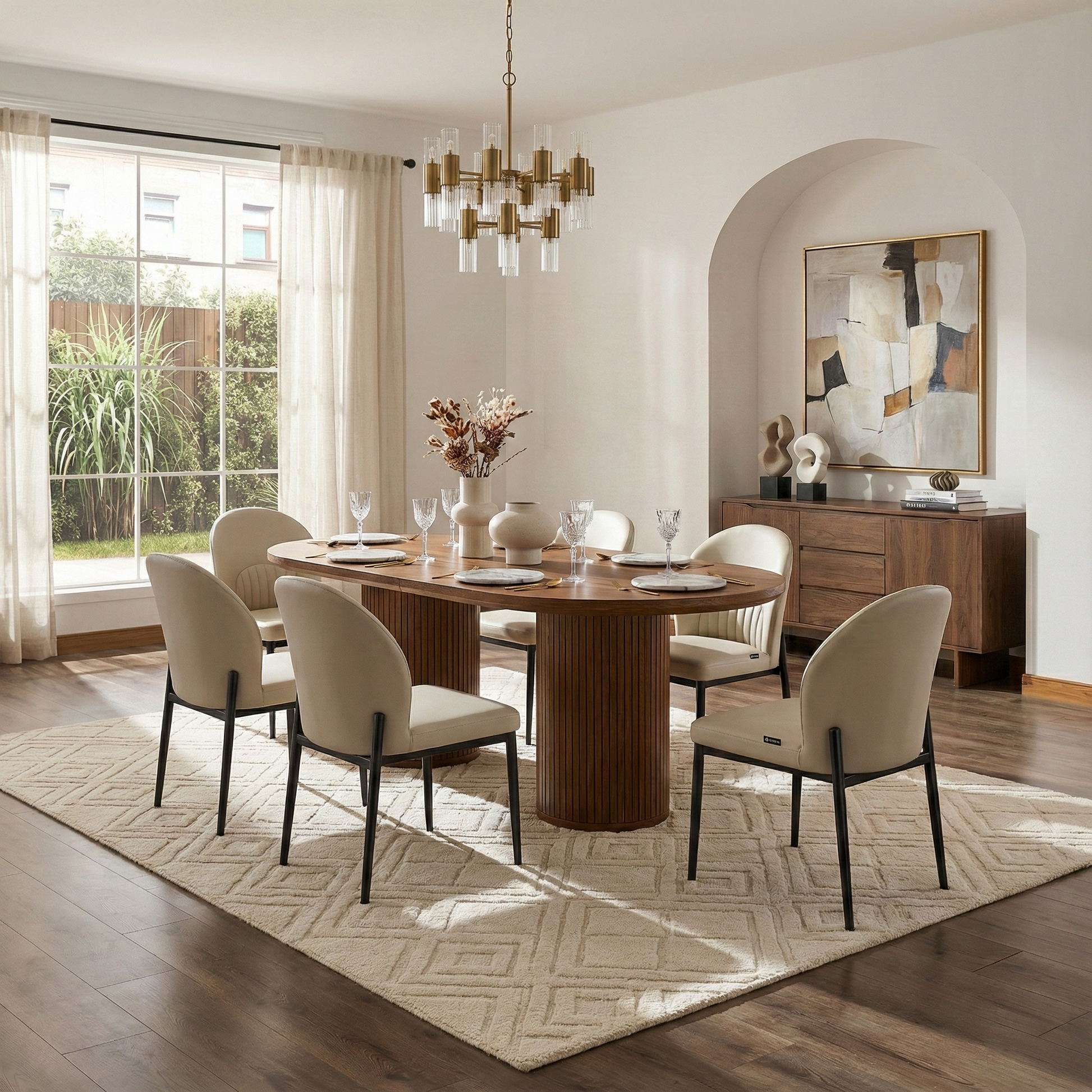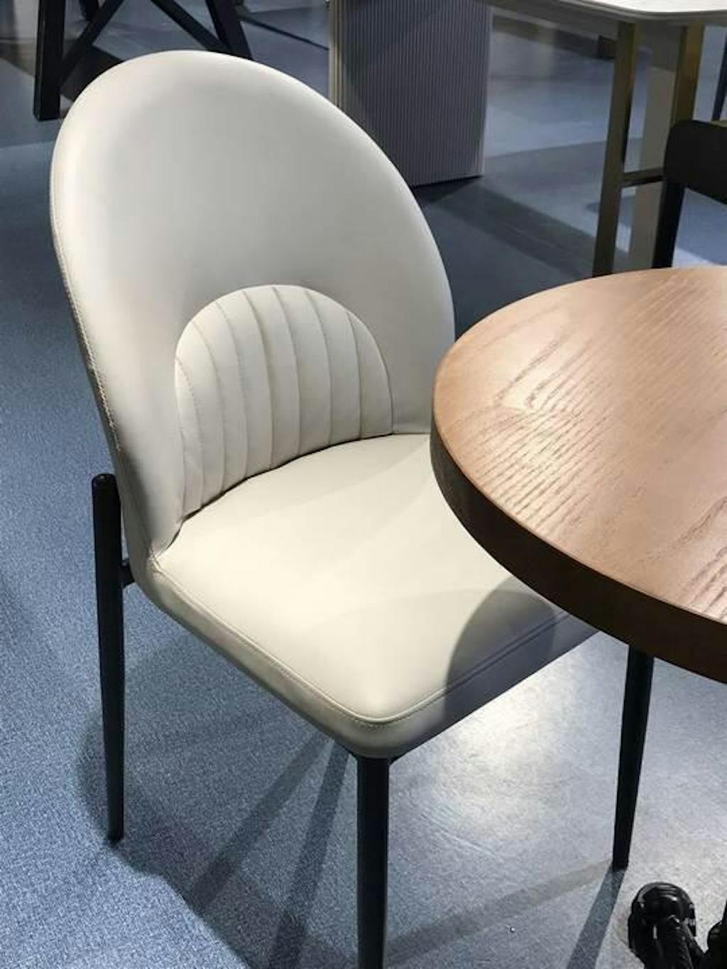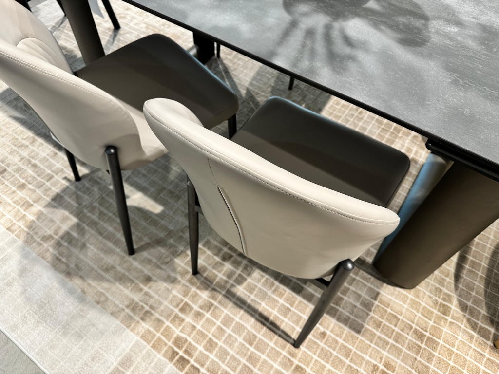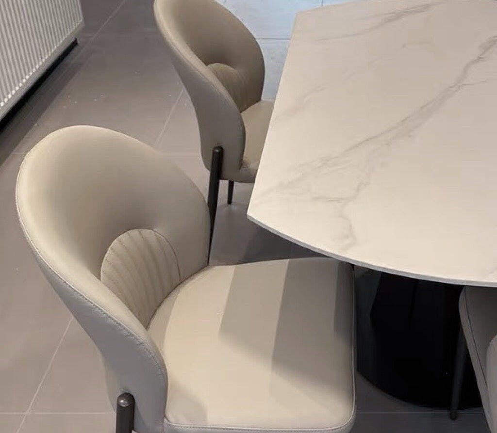 Featuring a minimalist design, our dining chair combines light-toned leather with a black base, devoid of any intricate decorations or colors. The overall presentation embodies the minimalist Italian lifestyle aesthetic, crafting a warm and chic sense of home beauty.