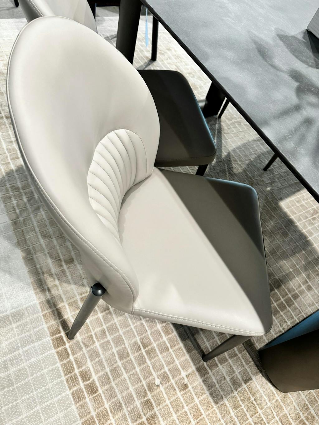 The curved shell back with vertical stitching is absolutely stunning in person—way more detailed than the photos.