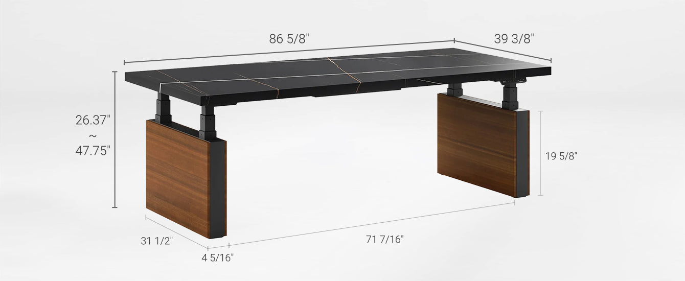 - Standing Desk Dimensions: 86 5/8" D x 39.37" W x 25- 46 2/8"H