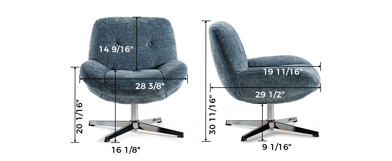 - Elegant Design: The Henry Swivel Lounge Chair features a minimalist design with a touch of elegance. Available in two stylish colors (blue and white), it seamlessly blends into various home settings and decor styles.