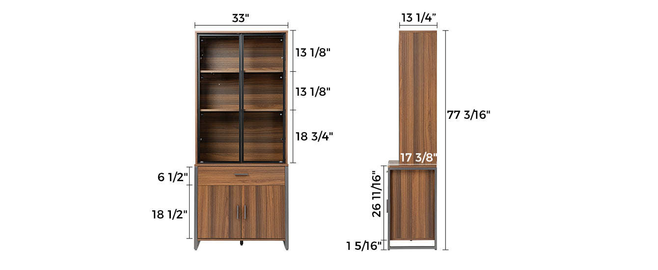 - Overall Dimensions: 33"W x 13.25"D x 77.18"H
