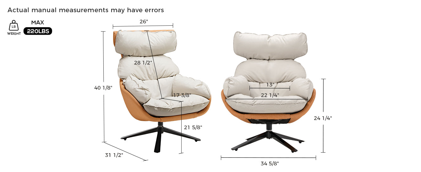 I’m really impressed with this swivel lounge chair. The faux leather looks and feels great, and it’s easy to clean. The chair swivels smoothly, and the cushioning provides great support for long periods of sitting. It’s the perfect addition to my living room, adding both style and comfort!!