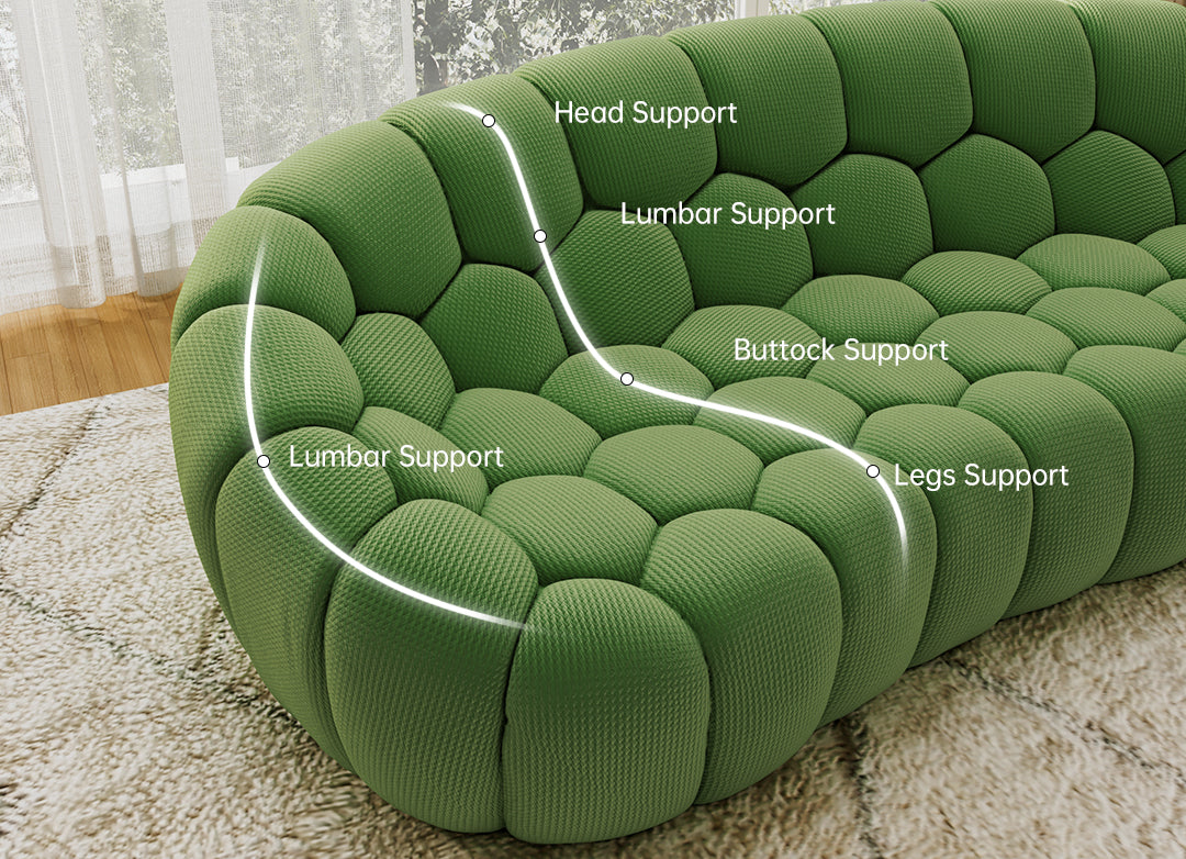 Elevate your living space with the chic Luca bubble ergonomic sofa, designed to be a striking focal point that also provides luxurious comfort for lounging. Crafted with soft and resilient foam material, this ergonomic sofa ensures both style and relaxation in your home, making it the perfect choice for those who value both aesthetics and support.