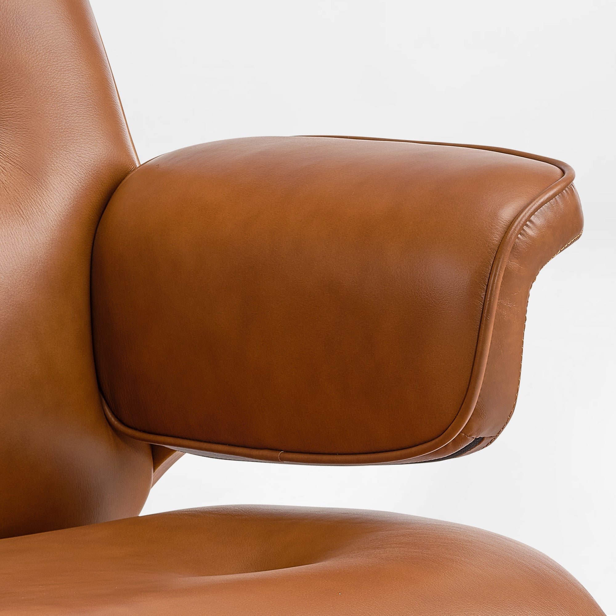 - Premium Napa Leather: Crafted from top-grain head-layer hides, all primary touchpoints are upholstered in genuine Napa leather. Non-contact areas, such as the underside of the armrests or hidden surfaces, are made with high-quality PVC for enhanced durability.
