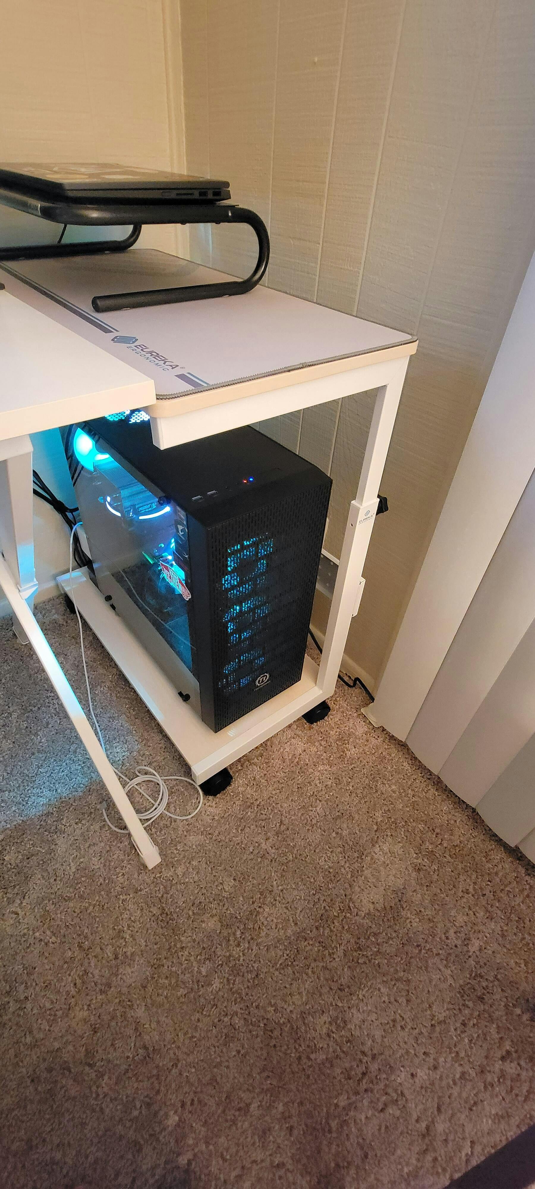 I purchased the first cpu cart prior to my new pc build. It made the build a breeze. I was so happy with the first pc cart, I purchased another. Easy to move around. The height adjustment is a real plus. I have one for my tower and one for my laptop. A great addition to my pc setup.