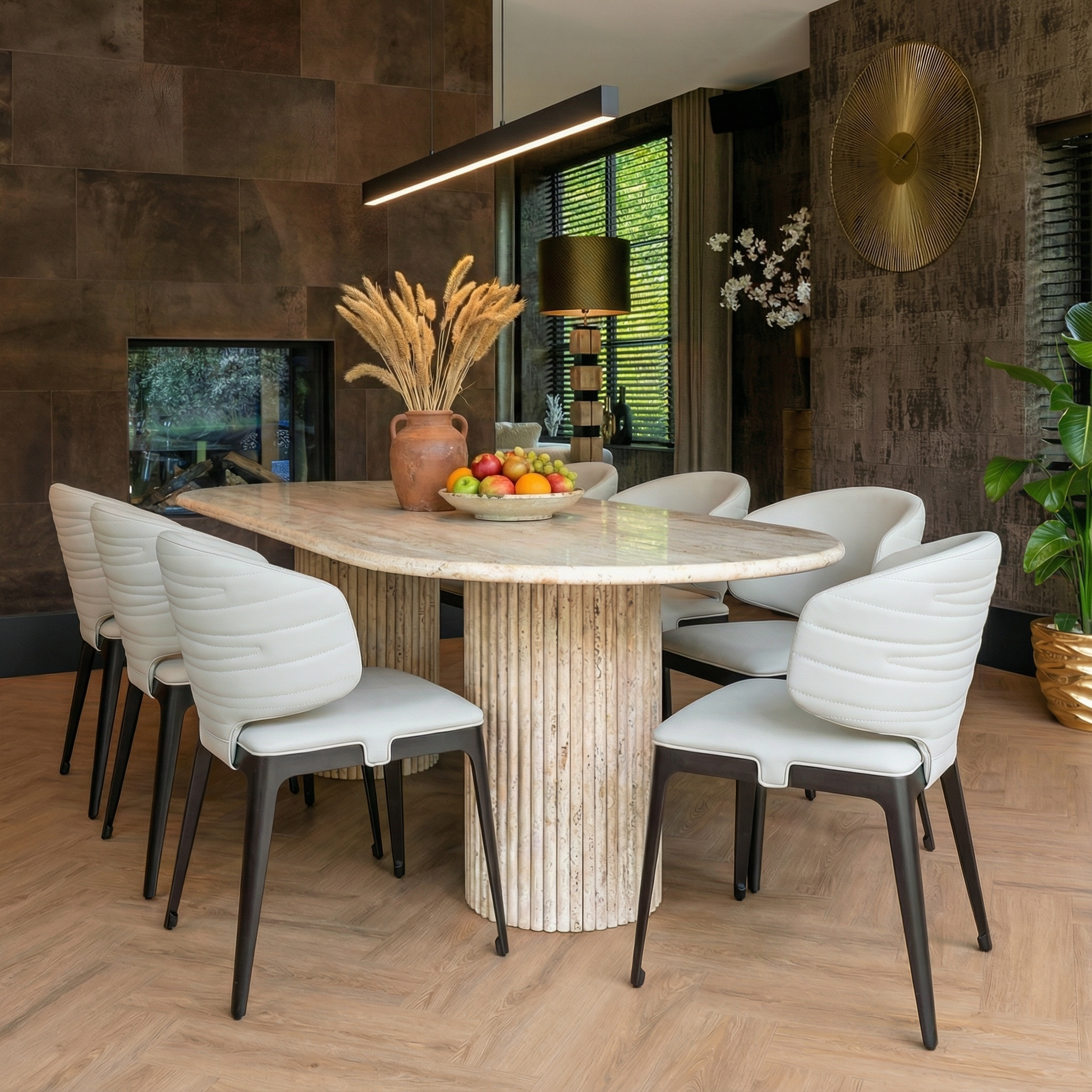 Modern avant-garde dining chairs spotlight your personality, bringing fashion to your dining area. With superior materials, sleek craftsmanship, and comfortable elegance, they embody your refined taste.