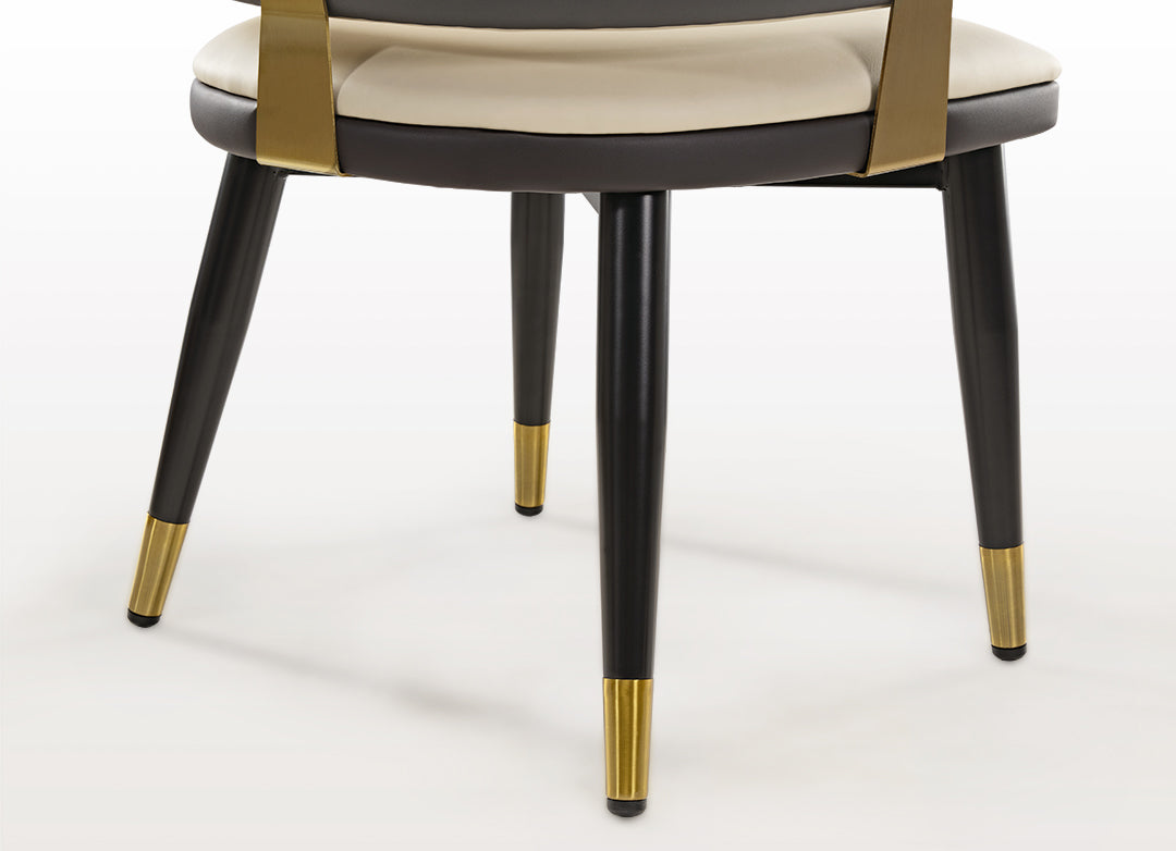Adorned with luxurious gold "socks," the dining chair infuse elegance into every occasion with its exquisite design.