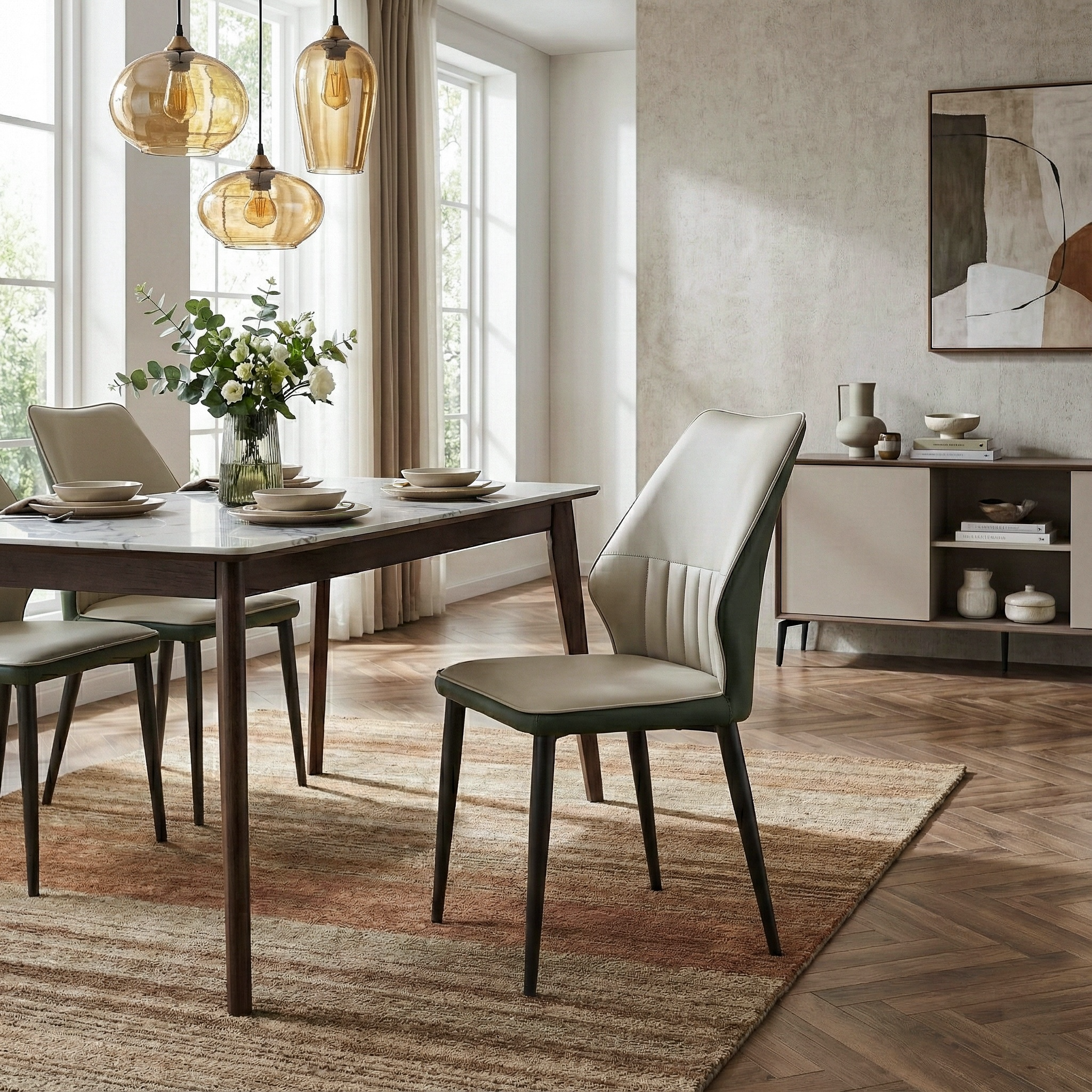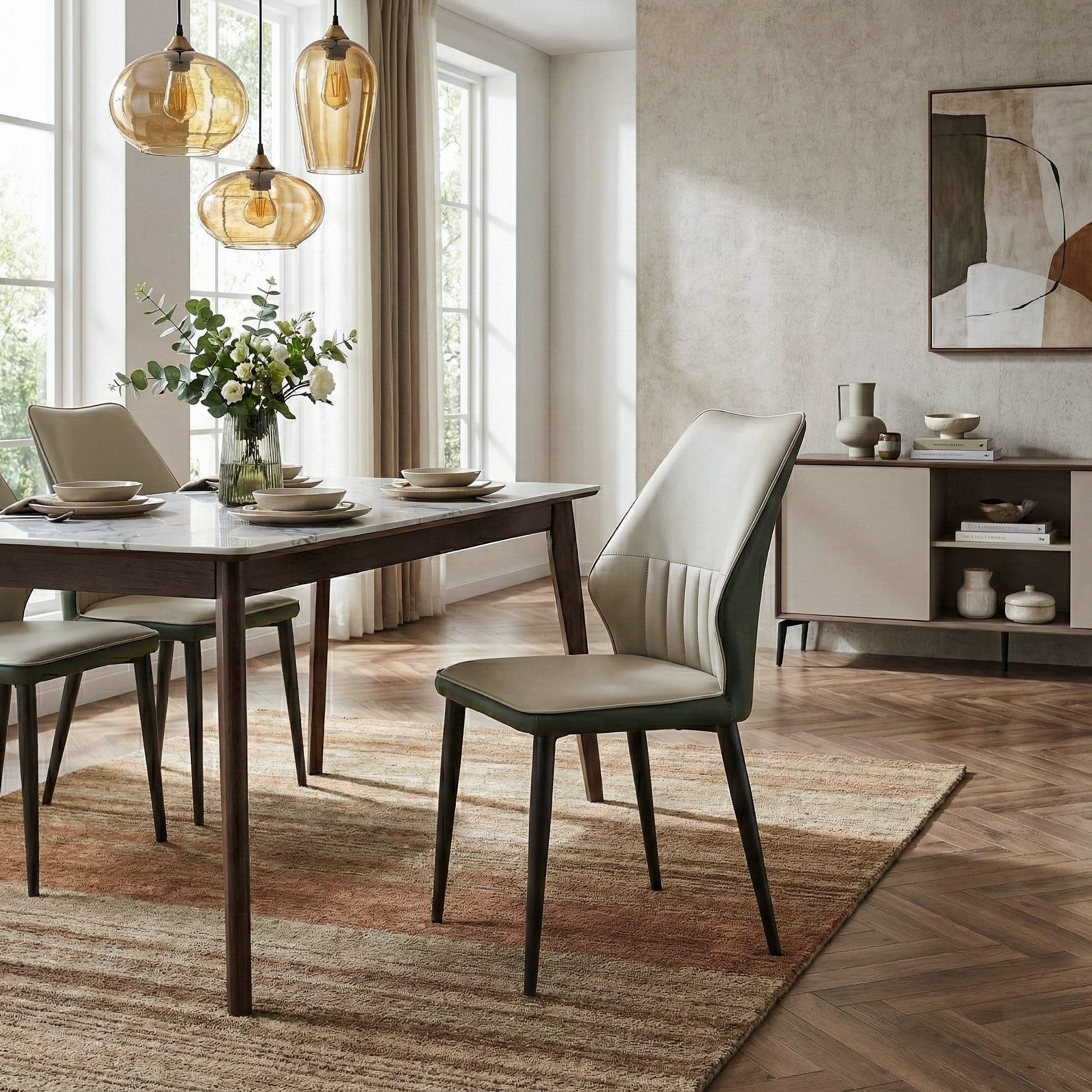 Ember, Upholstered Dining Side Chair Set of 2, Gray & Bottle Green