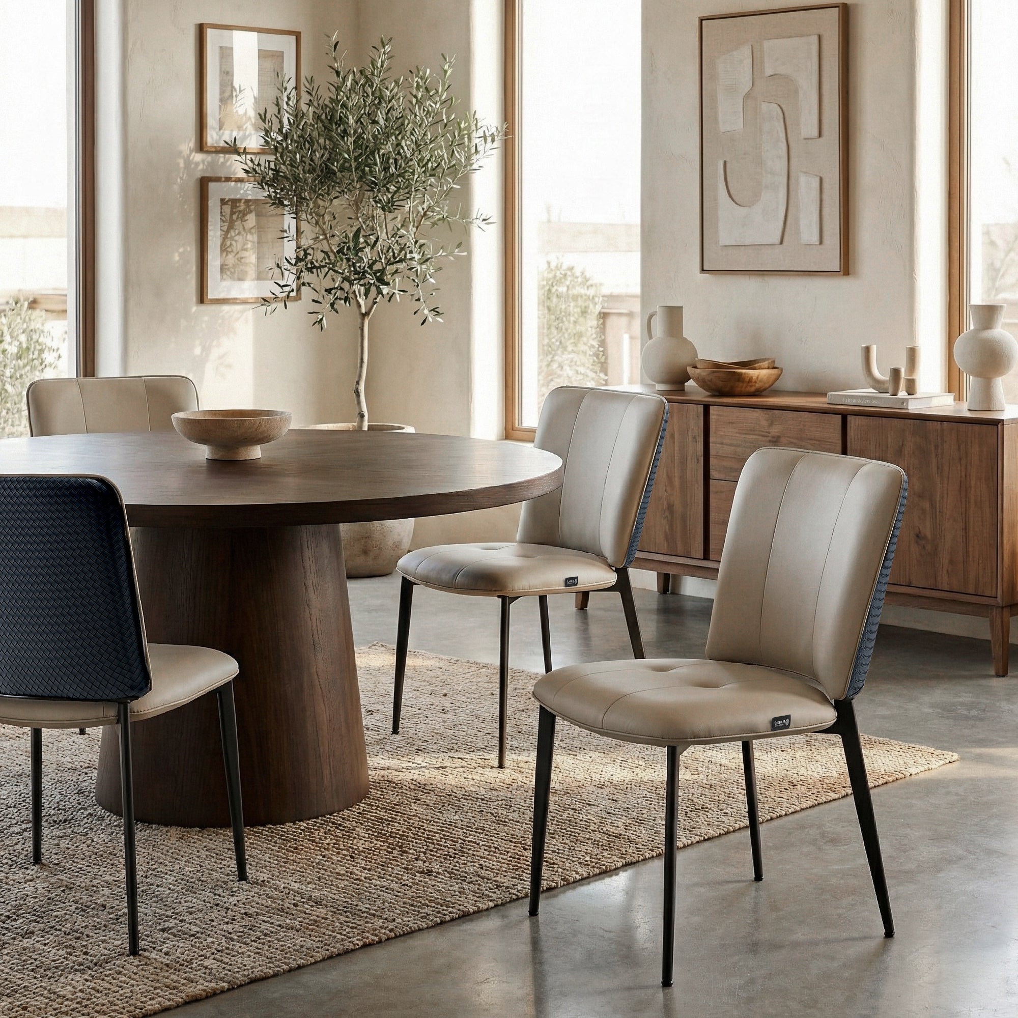 Couldn’t be happier with these chairs! The mix of smooth beige faux leather and the textured dark back is so chic, and they look even better in person than in the photos.