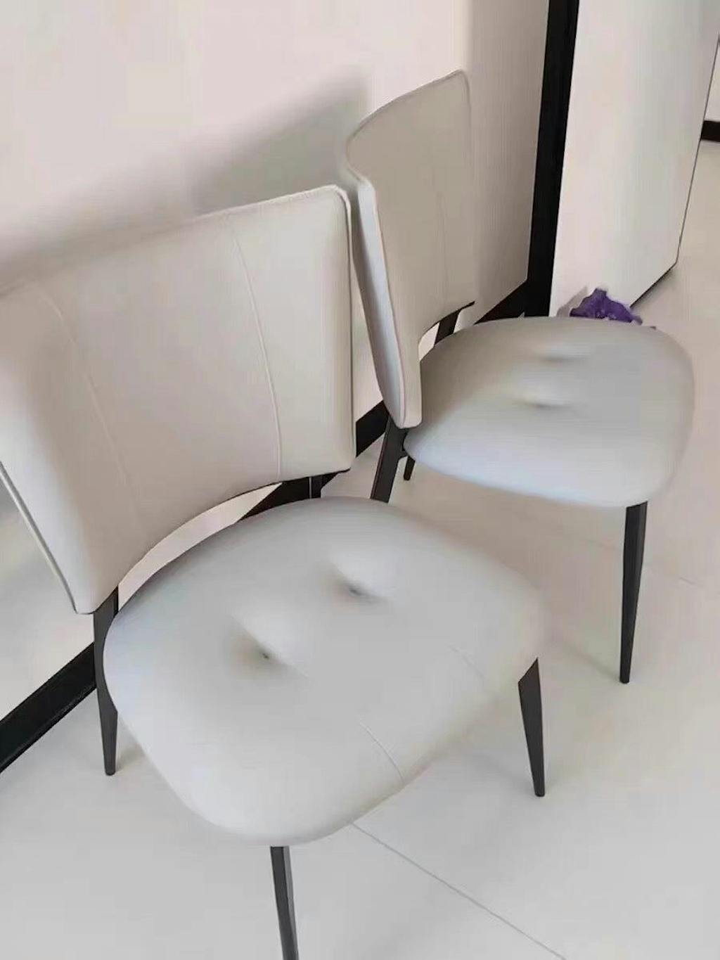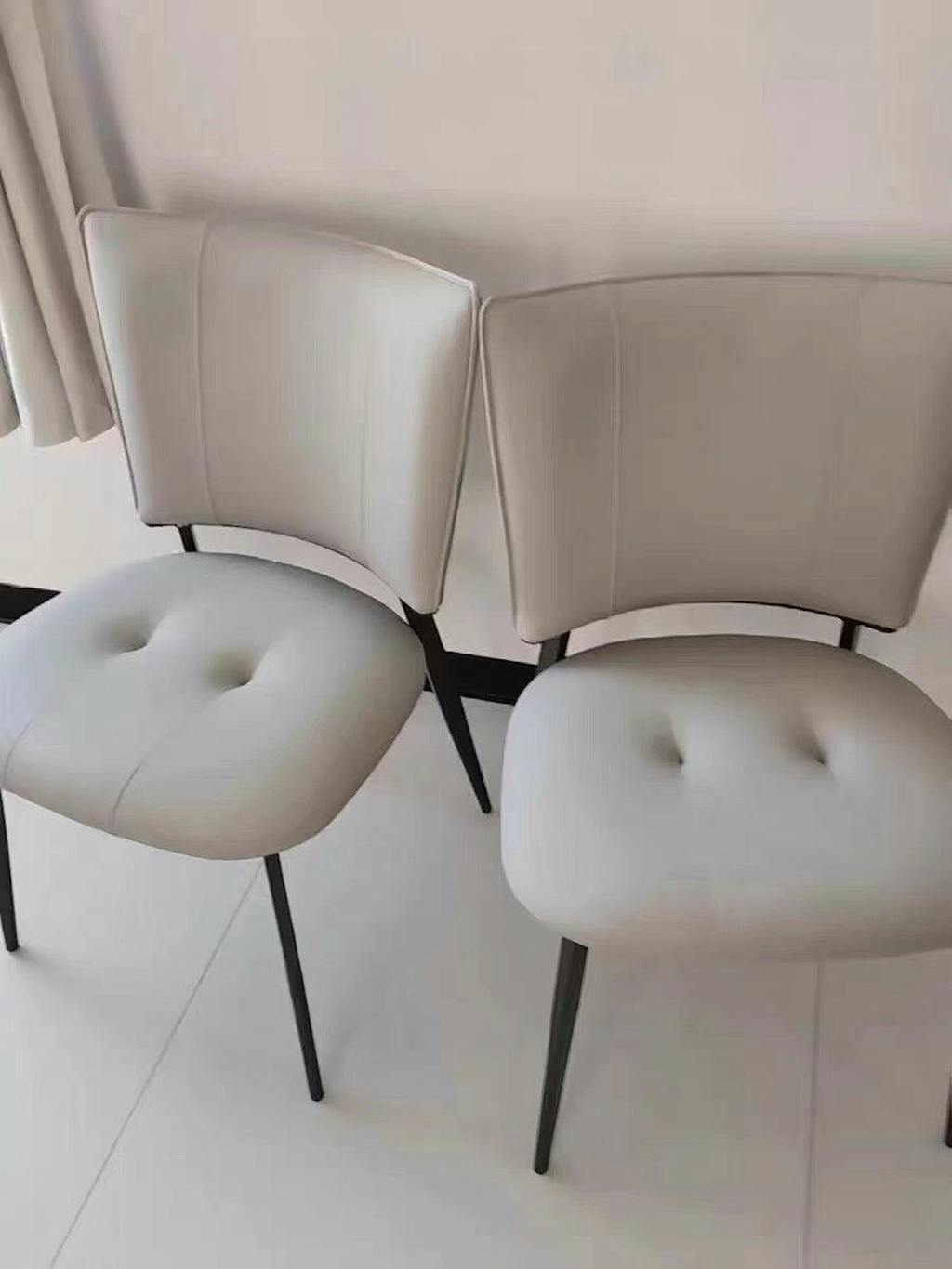 These chairs are the perfect blend of modern and cozy! The light beige seat and back are so soft to the touch, and the dark textured back on one chair adds such a cool contrast.