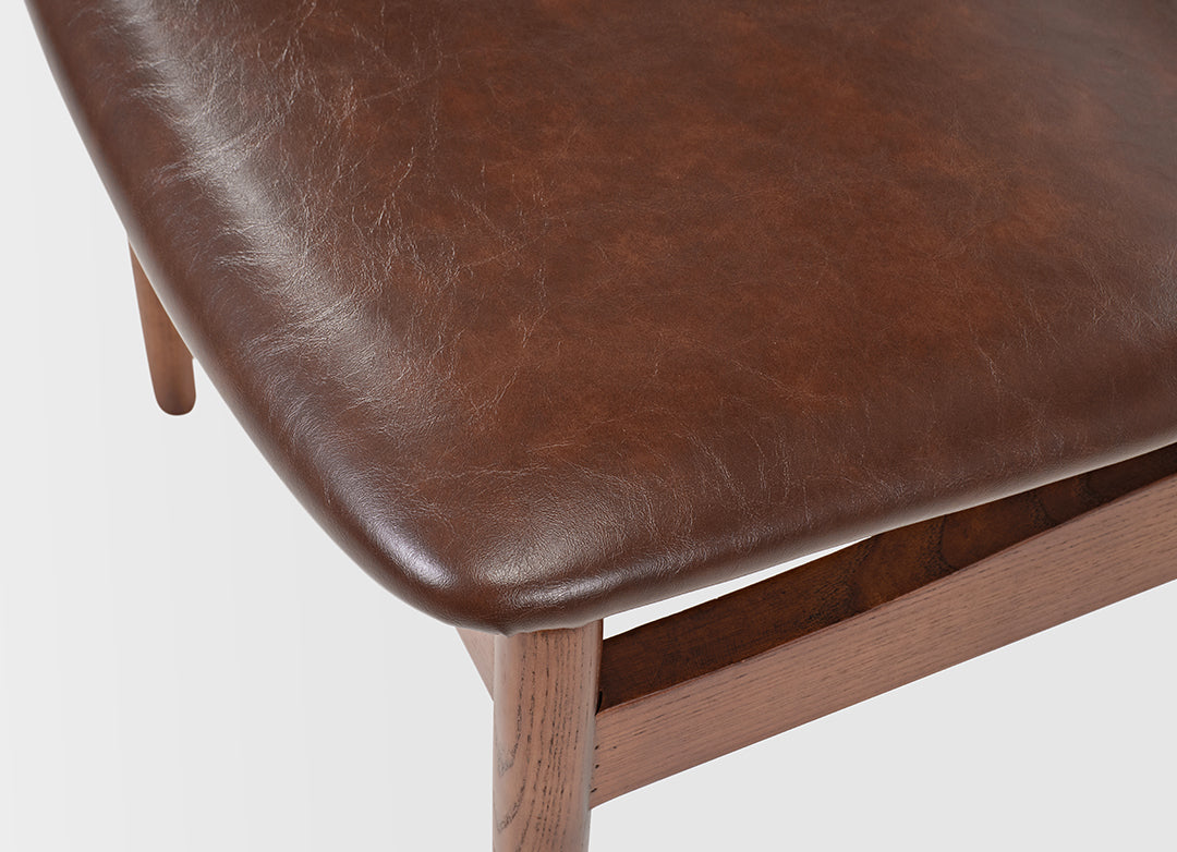 Upholstered in premium oil-waxed microfiber leather, this dining chair offers a luxurious feel and enhanced durability.