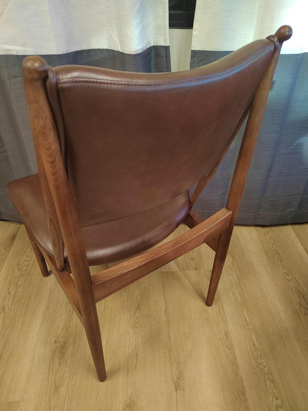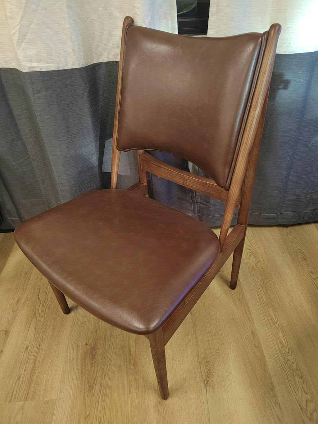 These chairs are everything I wanted for my mid-century modern dining room! The warm walnut wood frame has that classic retro vibe, and the brown faux leather seats are so soft and easy to clean