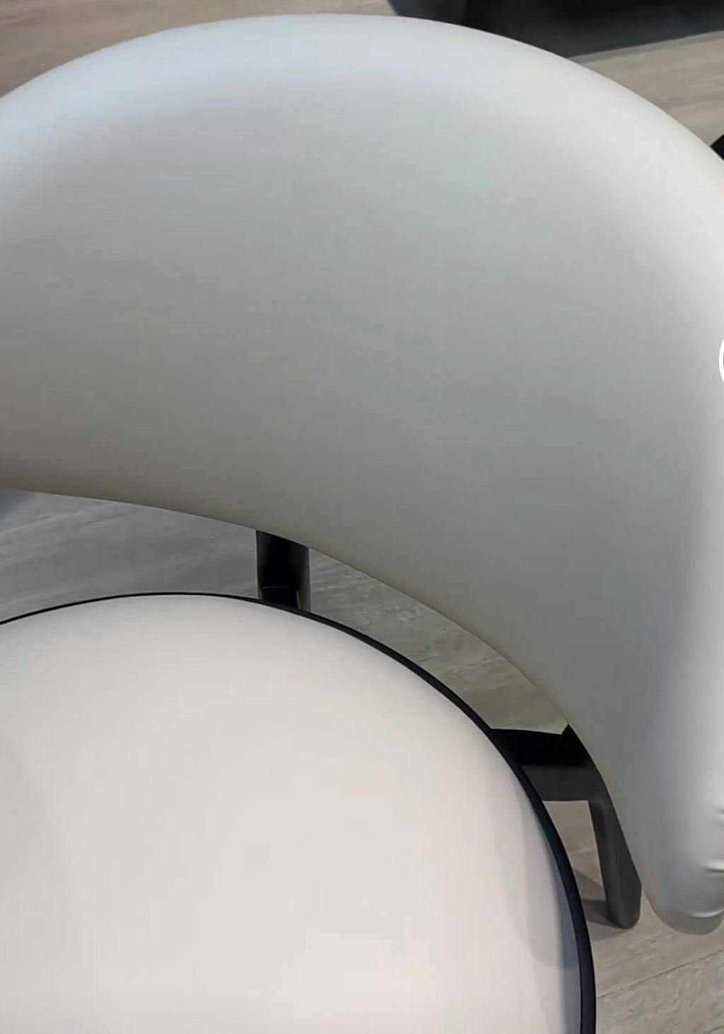 These chairs are the perfect blend of sleek design and cozy comfort! The curved cream faux leather back and seat feel luxurious, and the textured mesh panel on the side adds a unique, modern touch.