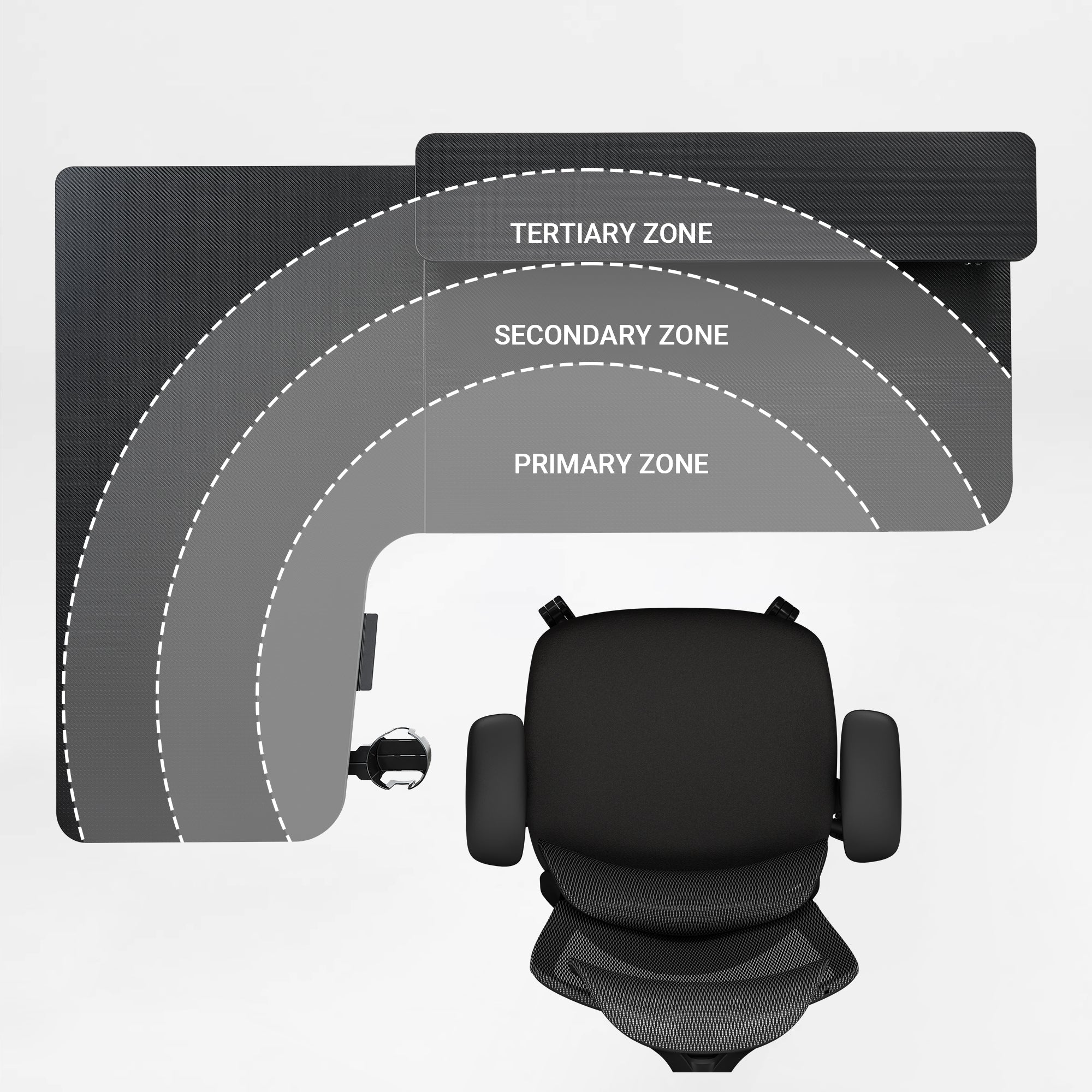 • Large L-Shaped Desk Surface: Maximize your room's corner with the expansive 61" L-shaped desktop featuring a sleek carbon fiber surface. This generously sized workspace provides ample room for your entire setup, ensuring you have all the space you need.