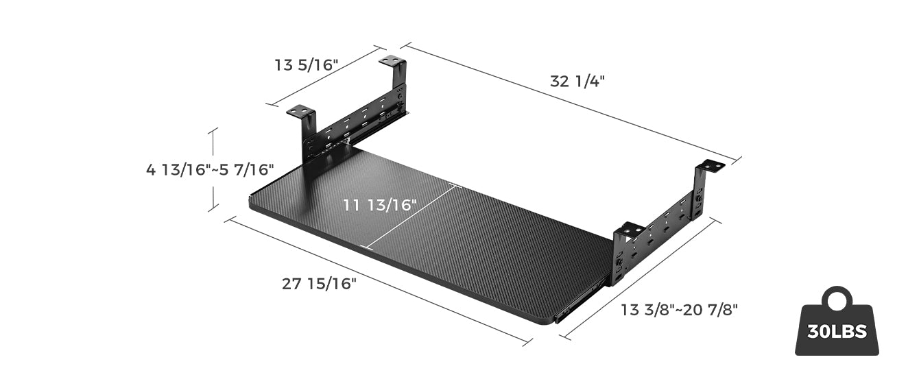 I needed a keyboard tray for a new office desk I was setting up. I initially purchased a slide out tray that had a single support in the middle. I found that to be unstable and the tray bounced up and down each time a key was pressed on the keyboard. It wasn't for me. So I set out to look for a tray that had rails on both sides of the keyboard to offer the support and stability I was looking for. That's when I came across this one. I just finished installing it, and it's perfect! It's stable and the quality of it is very nice. It came with good packaging and it even included a hex wrench and a Phillips screwdriver just in case I needed them (which I didn't, but it was a cool touch). This keyboard tray was obviously produced to go with other Eureka desk products because the instructions showed how to install it on a couple of specific desk models. But it also works under any desk as long as there is room on the sides for the mounting brackets. I wish there had been some sort of paper template included that could be used to mark the screw holes under the desktop. As it was, I had to lie on my back, balance the tray with one hand while trying to mark the holes with a pen in the other hand. Nevertheless, with brute strength and awkwardness, I managed to get it mounted. The tray slides smoothly and I really like the subtle carbon fiber finish on the style I purchased.