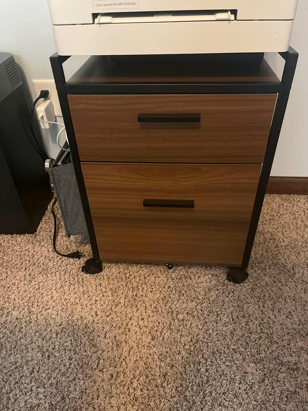 Wishi the hanger foe the folders was a little lower as I can't close the drawer when I put manilla folders with tabs inside a hanging file. Works great for just a hanging file thiugh. I like the side folder for extra space next to my desk. Works great.