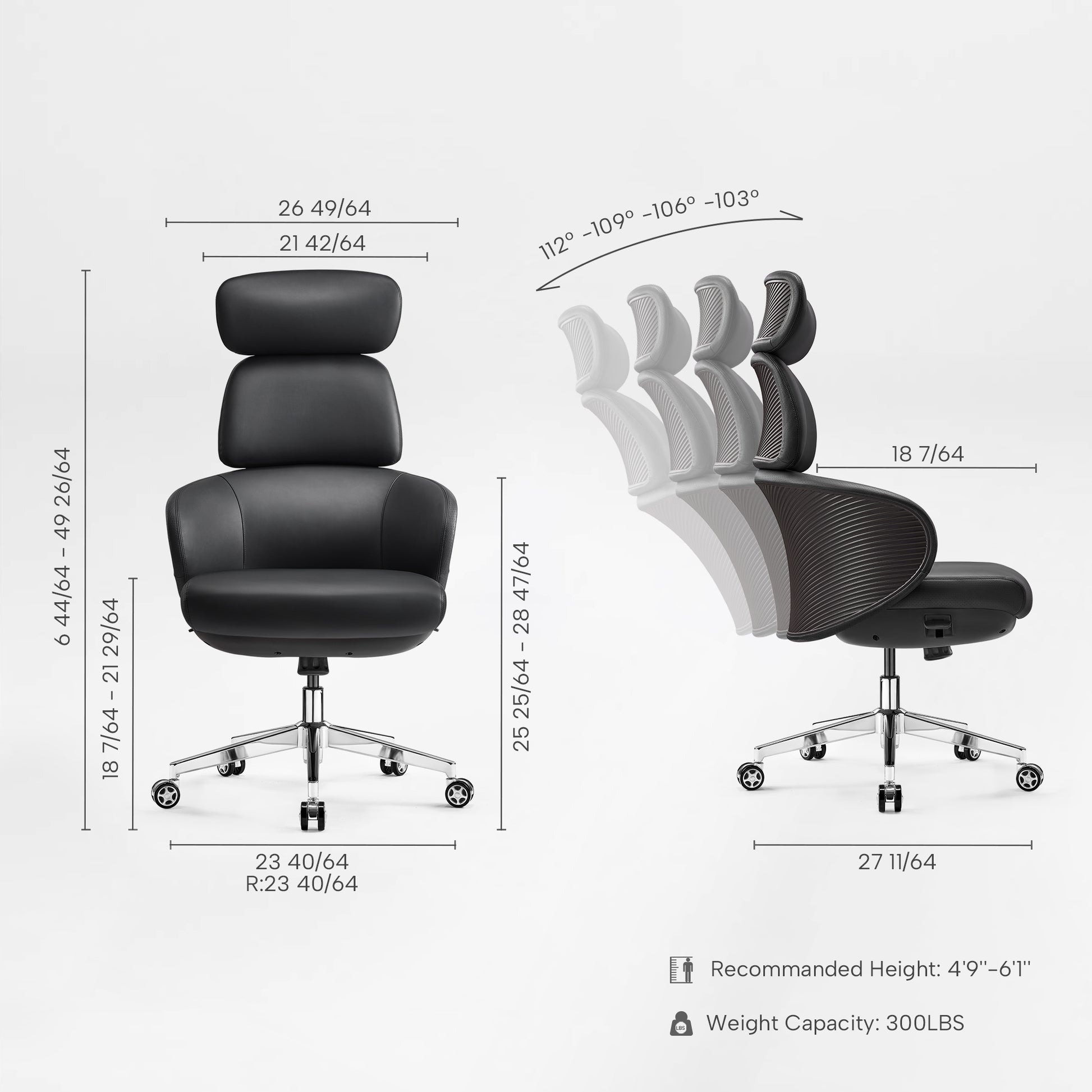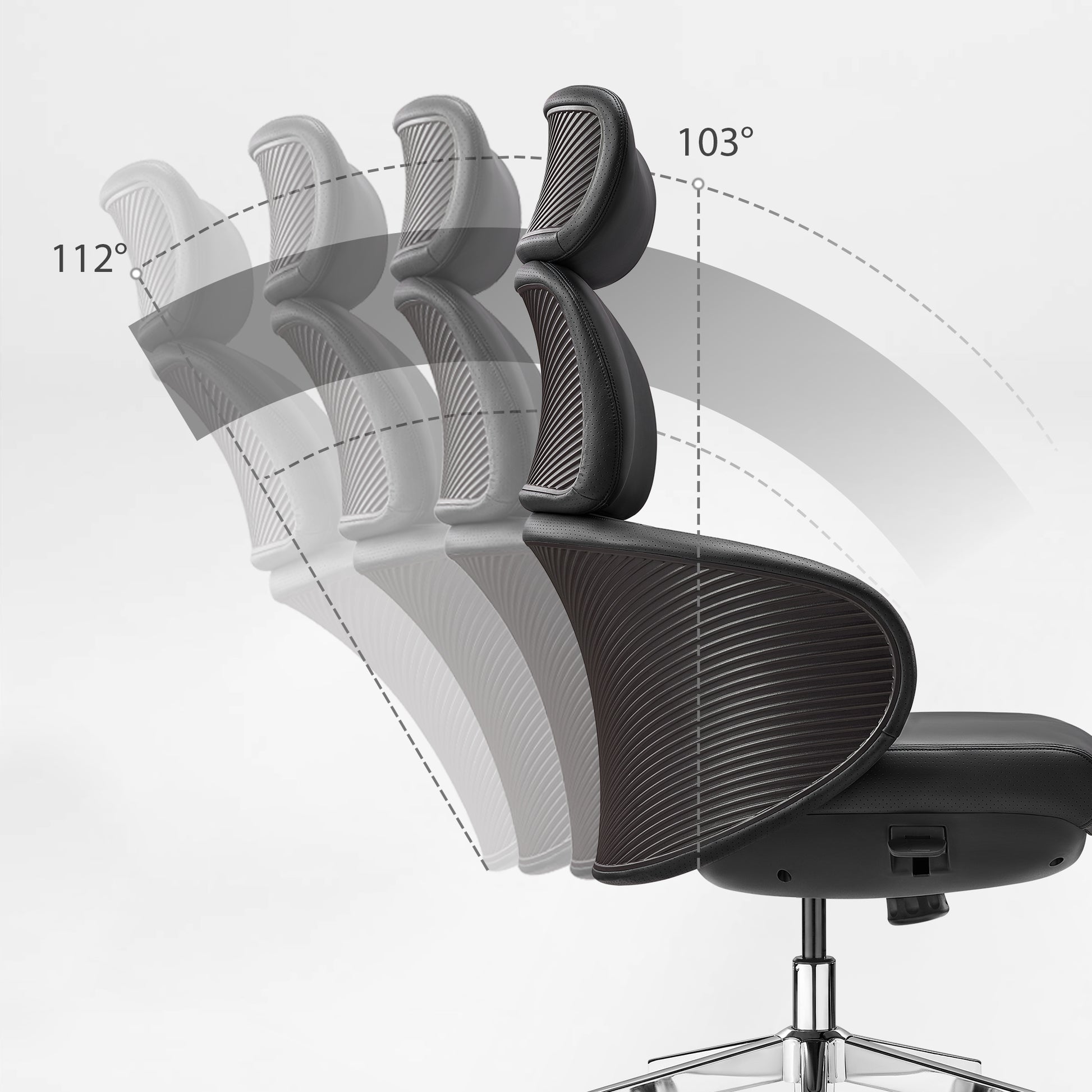 • Tailored Recline Adjustments: Four recline (103°–112°)and lock positions allow precise control over posture, adapting to your working style.
