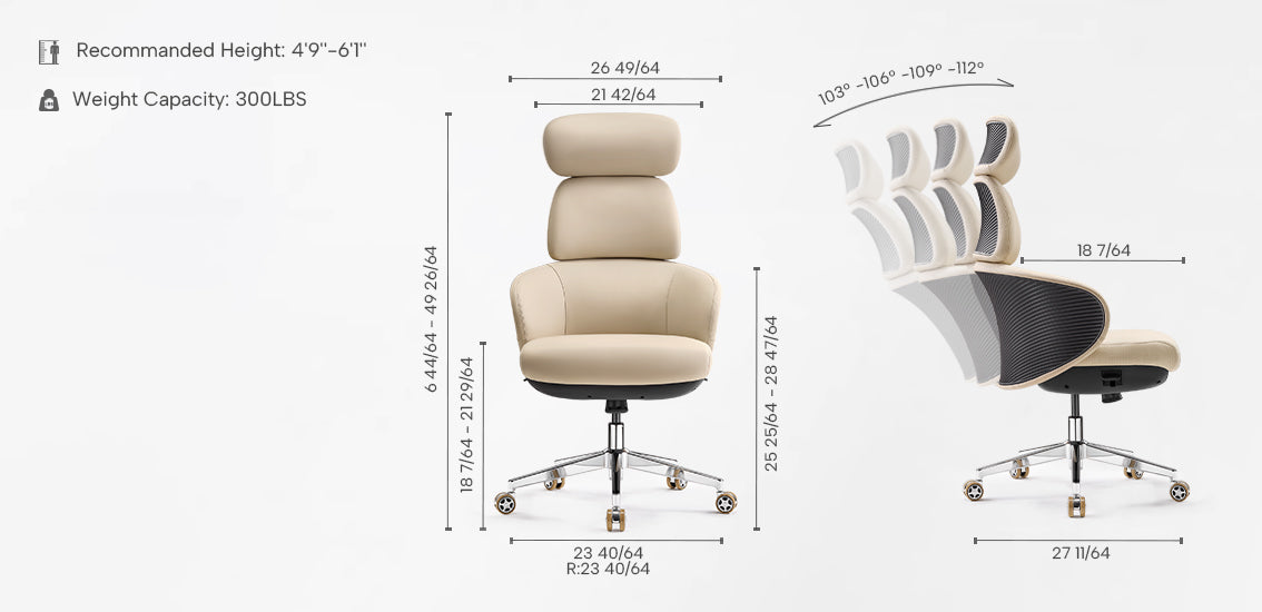• Tailored Recline Adjustments: Four recline (103°–112°)and lock positions allow precise control over posture, adapting to your working style.