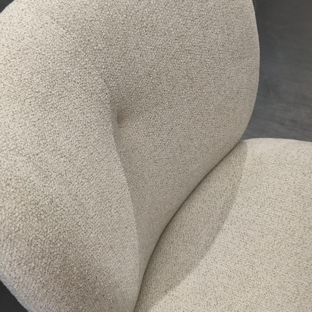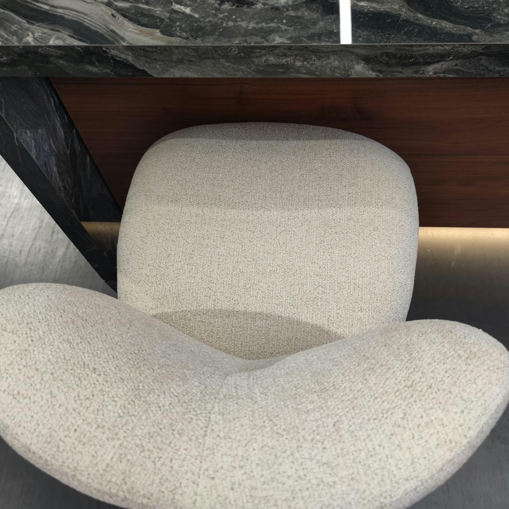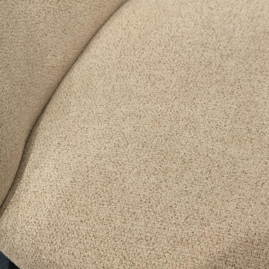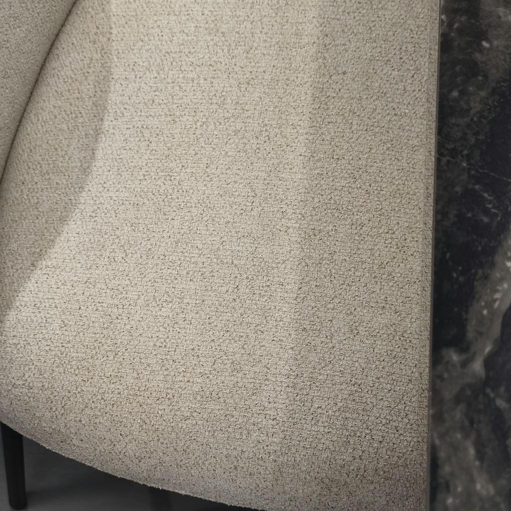 The minimalist design, along with the use of soft and textured beige fabric, enhances the comfort and aesthetics of the backrest.