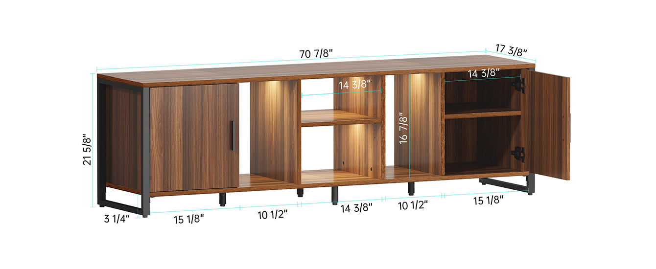 - Extra Wide Space: Accommodate TVs up to 80"; central open area with four separate compartments; two large side storage cabinets with two compartments each; store/display electronics, media, décor, and books with our Mid-Century TV stand.